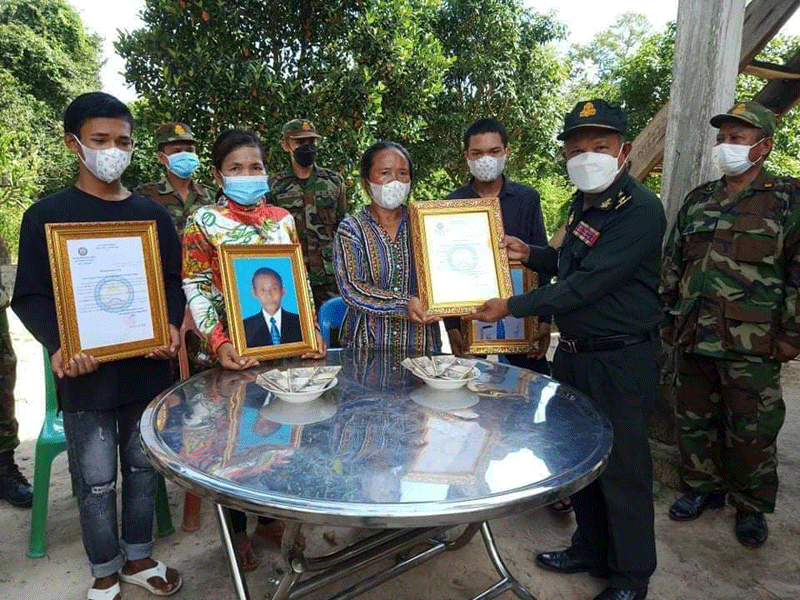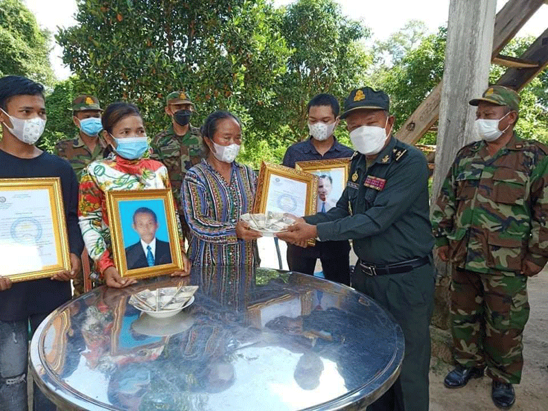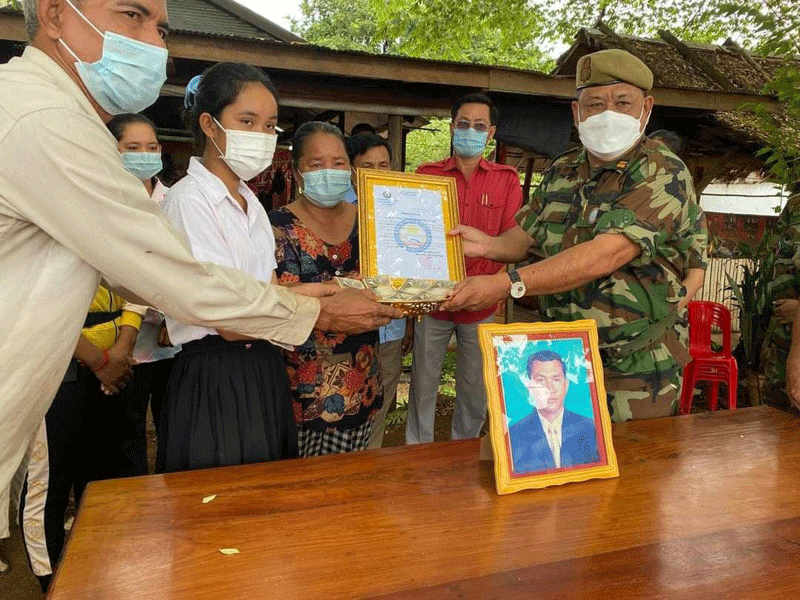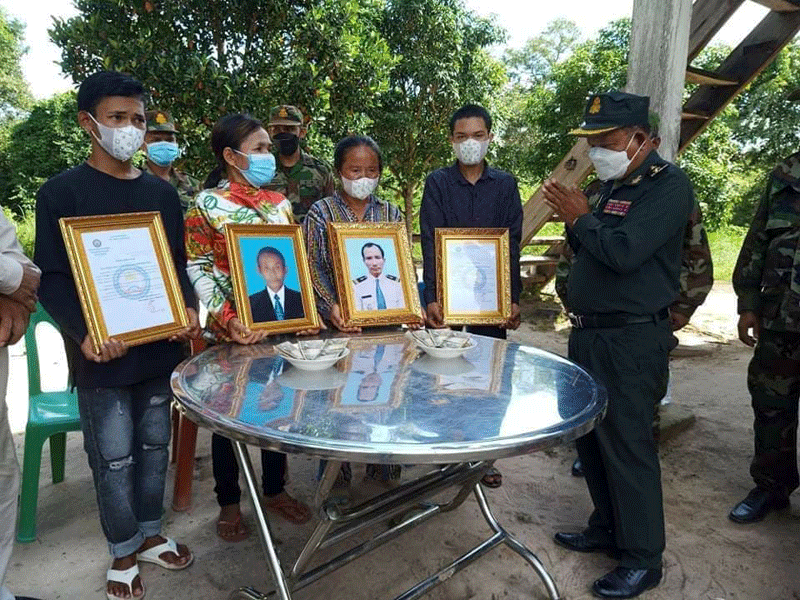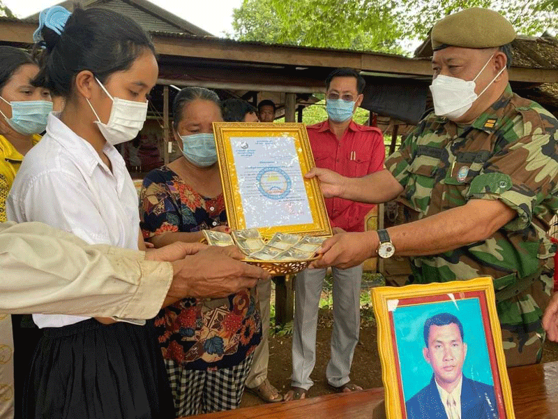 ព្រះវិហារ÷ នៅថ្ងៃទី១១ ខែតុលា ឆ្នាំ២០២១នេះ លោកវរសេនីយ៍ឯក ម៉ៅ សុវណ្ណ រួមនិងលោកឧត្ដមសេនីយ៍ត្រី ខឹម ឆៃ មេបញ្ជាការរង តំបន់ប្រតិបត្តិការសឹករងព្រះវិហារ និងជា អនុប្រធានសមាគម អតីតយុទ្ធជនកម្ពុជាខេត្តព្រះវិហារ តំណាង ឧត្តមសេនីយ៍ទោ ច័ន្ទ សុភ័ក្ត្រា មេបញ្ជាការ តំបន់ប្រតិបត្តិការសឹករងព្រះវិហារ និងជា ប្រធាន សមាគមអតីតយុទ្ធជនកម្ពុជា ខេត្តព្រះវិហារ បានដឹកនាំ ក្រុមការងារ សមាគម ខេត្ត សមាគមក្រុង ស្រុកនិងអាជ្ញាធរមូលដ្ឋាន ចុះប្រគល់ថវិកាបេឡាមរណៈសង្រ្គោះជូនដល់ក្រុមគ្រួសារសពចំនួន៣គ្រួសារ ដោយក្នុង ១គ្រួសារ ទទួលបានថវិកាចំនួន ៤,០០០,០០០៛ ។