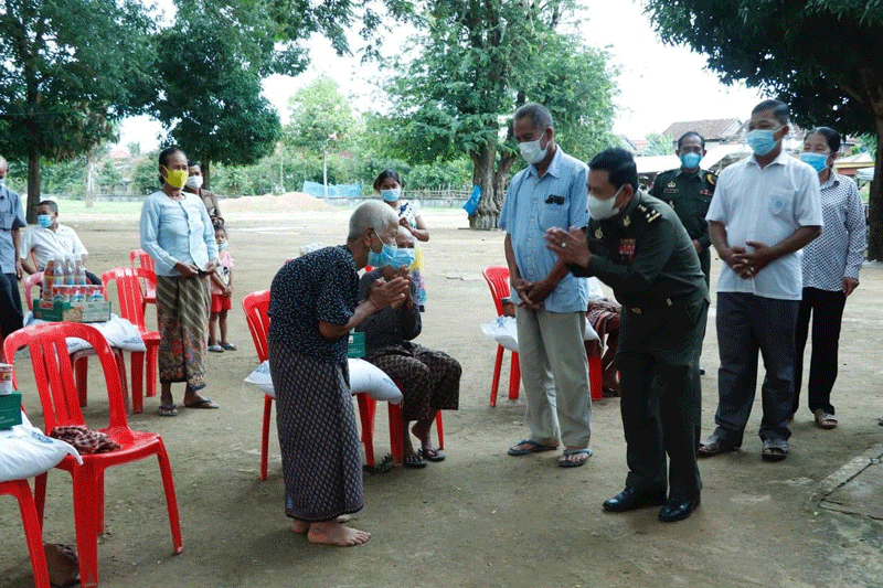 ក្នុងពិធីសំណេះសំណាលនេះ ឧត្តមសេនីយ៍ទោ សោម ស៊ុន បានពាំនាំនូវការផ្តាំផ្ញើសាកសួរសុខទុក្ខ ពី សំណាក់សម្ដេចអគ្គមហាសេនាបតីតេជោ ហ៊ុន សែន នាយករដ្ឋមន្ត្រីនៃព្រះរាជាណាចក្រកម្ពុជា និងសម្ដេចកិត្តិ ព្រឹទ្ធបណ្ឌិត ប៊ុន រ៉ានីហ៊ុនសែន ដែលសម្ដេចទាំងទ្វេរ តែងតែគិតគូរយកចិត្តទុកដាក់ អំពីជីវភាពរស់នៅរបស់ បងប្អូនប្រជាពលរដ្ឋគ្រប់ពេលវេលា ជាពិសេសក្នុងកាលៈទេសៈដែលប្រទេសជាតិយើង កំពុងរងផលប៉ះពាល់ ដោយសារជំងឺកូវីដ-១៩ និងបានសំណូមពរដល់បងប្អូនប្រជាពលរដ្ឋយើងទាំងអស់ ត្រូវបន្តអនុវត្តនូវវិធានការ៣ ការពារ និង៣កុំ ដើម្បីជៀសផុតពីការឆ្លងរាលដាលជំងឺកូវីដ-១៩។