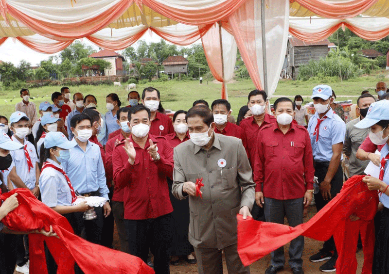 ក្នុងឱកាសនោះ ឯកឧត្តម ហ៊ុន ណេង និង ឯកឧត្ដម អ៊ុន ចាន់ដា បាន ពាំនាំ នូវ ប្រសាសន៍ ផ្តាំផ្ញេី សាកសួរសុខទុកពី សំណាក់ សម្ដេចកិត្តិព្រឹទ្ធបណ្ឌិត ប៊ុន រ៉ានី ហ៊ុនសែន ប្រធានកាកបាទក្រហមកម្ពុជា ជូនចំពោះលោកយាយ លោកតា ប្រជាពលរដ្ឋទាំងអស់ និងបានអំពាវនាវ សូម យកចិត្តទុកដាក់គិតគូរថែទាំសុខភាព ឲ្យបានល្អ រស់នៅត្រូវមានអនាម័យស្អាត ត្រូវសម្រាន្តក្នុងមុង និងពិសារទឹកឆ្អិនដាំពុះជានិច្ច ជាពិសេស ត្រូវបន្តរៀនរស់នៅជាមួយជម្ងឺកូវីដ-១៩ ដោយអនុវត្ត តាមវិធានសុខាភិបាល “៣ការពារ ៣កុំ និង ២ចូលរួម ” ឲ្យបានខ្ជាប់ខ្ជួន ដេីម្បីជៀសផុតពីពីការឆ្លងរាលដាលនៃជំងឺដ៏កាចសាហាវនេះ ព្រមទាំងសូមជូនពរដល់ម្ចាស់ផ្ទះ ថ្មី និងលោកយាយ លោកតាទាំងអស់ សូមមានសុខភាពរឹងមាំ អាយុយឺនយូរ ហើយបន្តរស់នៅ ក្រោមម្លប់នៃសុខសន្តិភាព និងការអភិវឌ្ឍន៍ ផងដែរ ។
