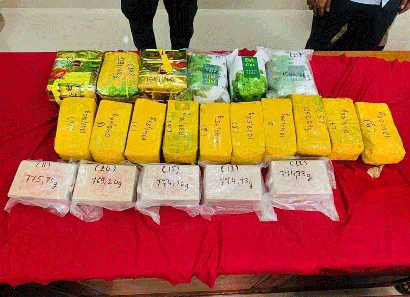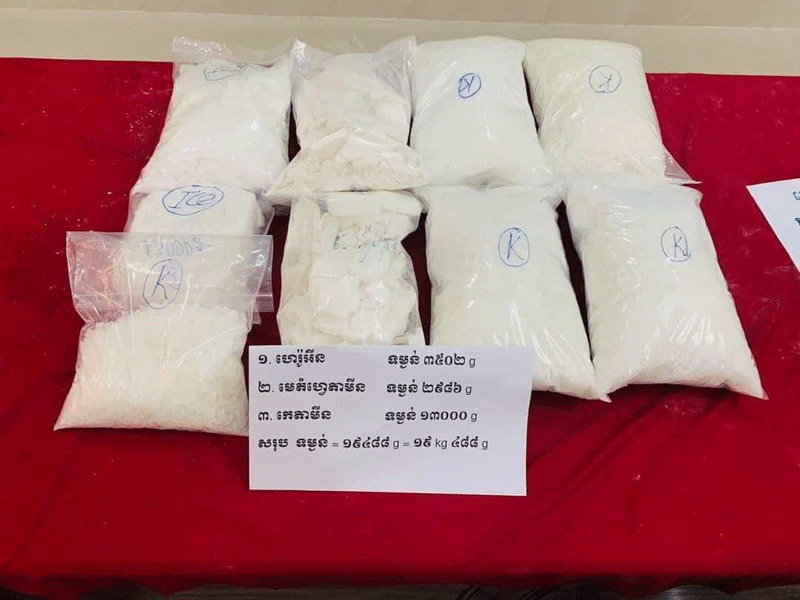 សមត្ថកិច្ចបានបន្តថា ក្នុងប្រតិបត្តិការចុះបង្ក្រាបករណីគ្រឿងញៀននេះ កម្លាំងជំនាញបានចាប់យកវត្ថុតាងរួមមាន៖ ថ្នាំញៀន ប្រភេទហេរ៉ូអុីន ទម្ងន់ ៣,៥០២ក្រាម និងថ្នាំញៀនប្រភេទមេតំហ្វេតាមីនទម្ងន់ ២,៩៨៦ក្រាម។ ថ្នាំញៀនប្រភេទកេតាមីន ទម្ងន់ ១៣,០០០ក្រាម(សរុបទម្ងន់ ១៩.៤៨៨គីឡូក្រាម) អាវុធខ្លីធុន K54 ចំនួន ០១ដើម បង់០១, គ្រាប់ចំនួន ០៨គ្រាប់ ម៉ូតូ០១គ្រឿង និងកាបូបធំ សម្រាប់ដាក់គ្រឿងញៀនចំនួន០១៕