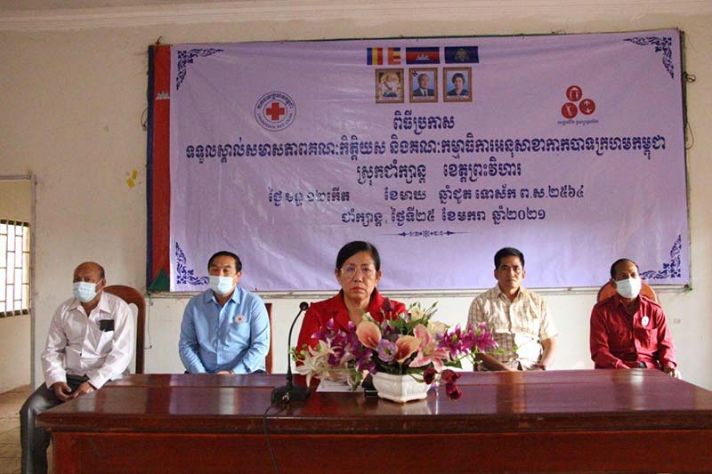 ព្រះវិហារៈ នៅព្រឹកថ្ងៃទី២៥ ខែមករា ឆ្នាំ២០២១ នេះ សាខាកាកបាទក្រហមកម្ពុជាខេត្តព្រះវិហារ បានរៀបចំពិធីប្រកាសទទួលស្គាល់សមាសភាពគណៈកិត្តិយស គណៈកម្មាធិការអនុសាខាស្រុក ក្រុមកាកបាទក្រហមកម្ពុជាឃុំ/សង្កាត់ និងអ្នកស្ម័គ្រចិត្តភូមិ ប្រចាំអនុសាខាកាកបាទក្រហមកម្ពុជាស្រុកជាំក្សាន្តនិងក្រុងព្រះវិហារ ក្រោមអធិបតីភាព លោកជំទាវ ចឹក ហេង អនុប្រធានអចិន្ត្រៃយ៍សាខា តំណាងឯកឧត្តម ប្រាក់ សុវណ្ណ ប្រធានគណៈកម្មាធិការសាខាកាកបាទក្រហមកម្ពុជាខេត្តព្រះវិហារដោយមានការអញ្ជើញចូលរួមពីមន្ត្រីសាខា និងអនុសាខាជាច្រើនរូប។