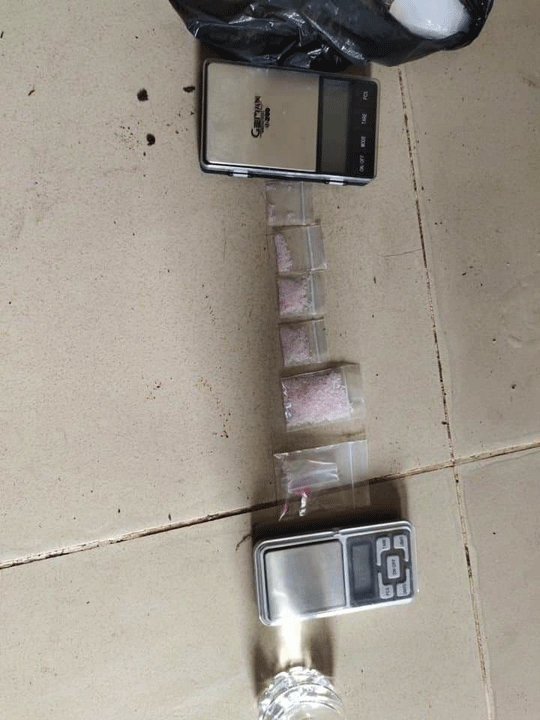 ១.ម្សៅក្រាមពណ៌សថ្លា សង្ស័យជាសារធាតុញៀន ចំនួន ០៥ កញ្ចប់ ។