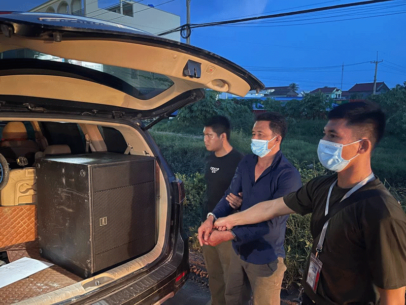 វត្ថុតាងចាប់យក ១.រថយន្តម៉ាក KIA CARNIVAL ពណ៌ខ្មៅ ស៊េរីឆ្នាំ២០១៩ មិនមានស្លាកលេខ,២. ធុងបាស០១គ្រាប់,៣. ម៉ាសុីនចាក់ឌីជេ ០១គ្រាប់,៤.កន្ត្រៃកាត់ដែក ពណ៌បៃតង ប្រវែង០១ម៉ែត្រ,៥.មេសោរសូឡេច០១ និង៦.ស្ព្រាយបាញ់ទ្វារ០១កំប៉ុង ។