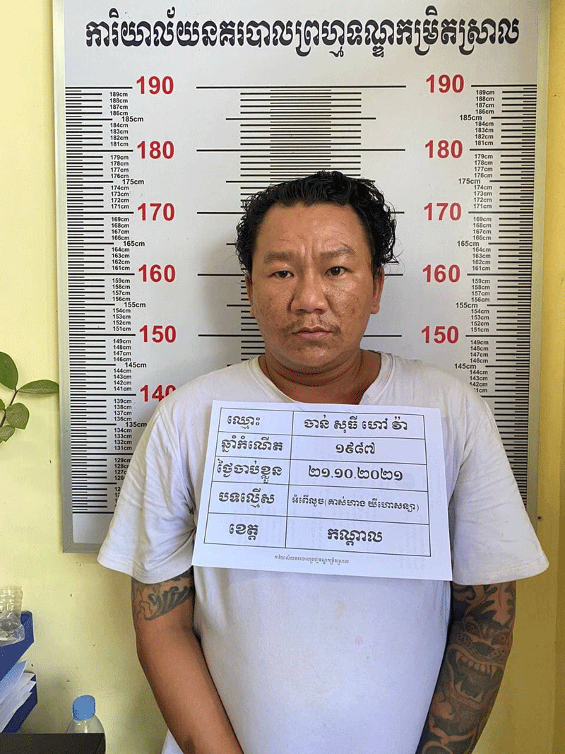 ចំណែកជនសង្ស័យ២នាក់រួមមាន ១-ឈ្មោះ គង់ ដាវី ហៅមាស សុវណ្ណារិទ្ធ ហៅផល ភេទប្រុស អាយុ៤២ឆ្នាំ ទីលំនៅភូមិទំនប់ សង្កាត់ភ្នំពេញថ្មី ខណ្ឌសែនសុខ រាជធានីភ្នំពេញនិង២-ឈ្មោះ ចាន់ សុធី ហៅ វ៉ា ភេទប្រុស អាយុ៣៤ឆ្នាំ មានទីលំនៅភូមិដើមចាន់ សង្កាត់ច្បារអំពៅ២ ខណ្ឌច្បារអំពៅ រាជធានីភ្នំពេញ។