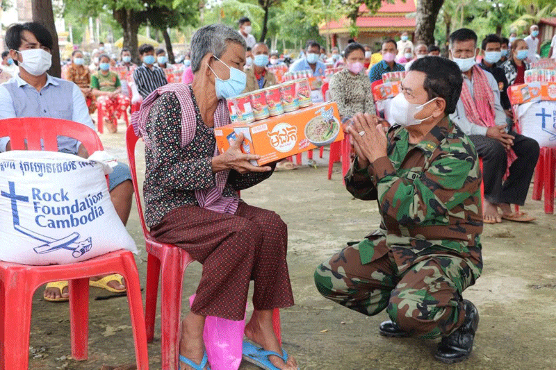 លោក ប្រេត ម៉ាដឺលែន និង លោក សួន សំរ៉េណូ ប្រធាន និង នាយកប្រតិបត្តិអង្គការរ៉ុកហ្វោនដេសិនខេមបូឌាដែលជាសប្បុរសជនម្ចាស់អំណោយបានមានប្រសាសន៍ថាដើម្បីរួមចំណែកជាមួយរាជរដ្ឋាភិបាលនិងរដ្ឋបាលថ្នាក់ក្រោមជាតិ ក្នុងការជួយដោះស្រាយនូវការលំបាករបស់ប្រជាពលរដ្ឋដែលរងផលប៉ះពាល់ដោយសារការឆ្លងរីករាលដាលជំងឺកូវីដ19ជាសកល និងដោយឃើញពីសកម្មភាពដ៏មមាញឹករបស់ឧត្តមសេនីយ៍ទោសោមស៊ុន មេបញ្ជាការតំបន់ប្រតិបត្តិការសឹករងកំពង់ធំក្នុងការដោះស្រាយការលំបាកខ្វះខាតជូនប្រជាពលរដ្ឋនិងអតីតយុទ្ធជននៅក្នុងខេត្តកំពង់ធំ លោកបានសម្រេចចិត្តចូលរួមចំណែកក្នុងសកម្មភាពមនុស្សធម៌នេះ ដើម្បីសម្រាលការលំបាករបស់បងប្អូនប្រជាពលរដ្ឋដែលមានជីវភាពលំបាកខ្វះខាត ដោយសុទ្ឋចិត្ដ។