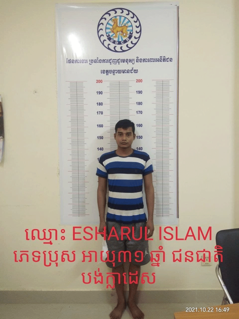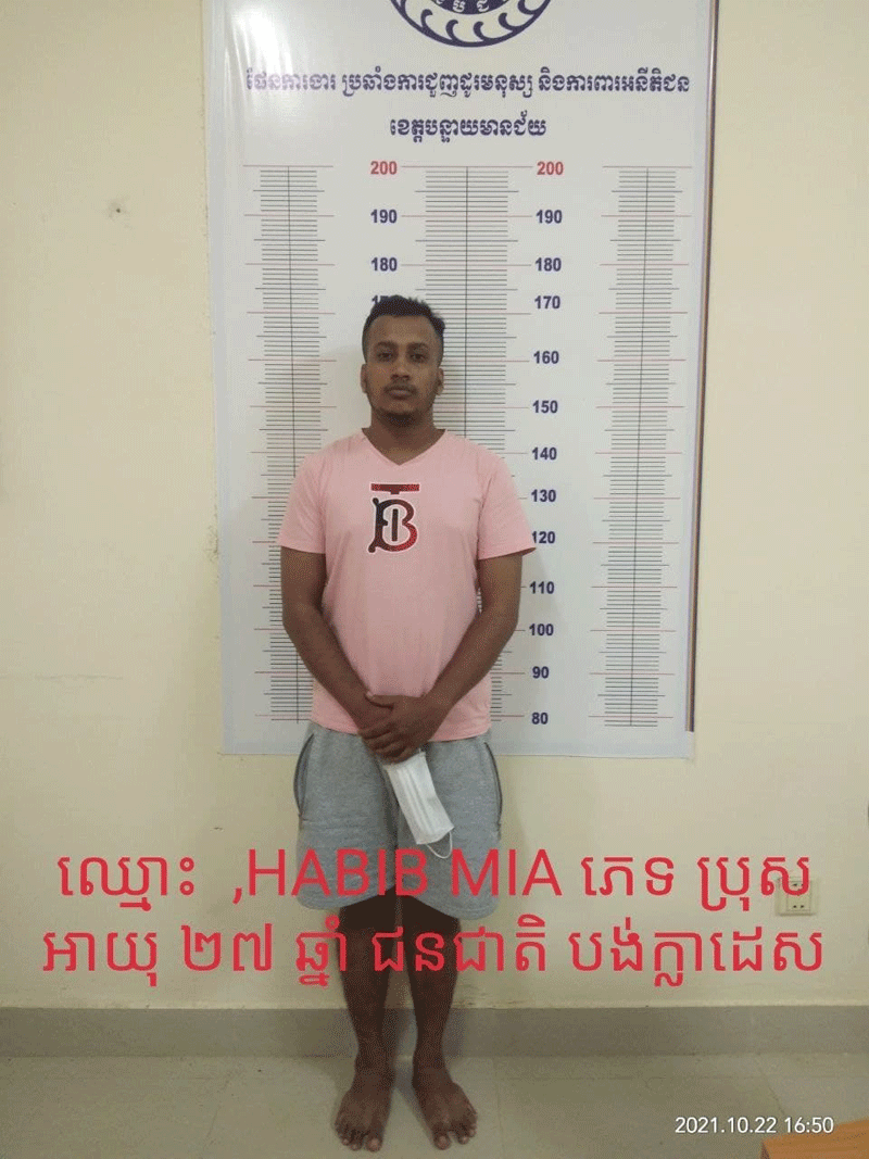 បន្ទាយមានជ័យ៖ សមត្ថកិច្ចនគរបាលឃាត់ខ្លួនជនបរទេសចំនួន04នាក់ ពីបទពង្រត់ និងបង្ខាំងមនុស្សចំនួន08នាក់ខុសច្បាប់បញ្ចូនទៅកាន់តុលាការនៅរសៀលថ្ងៃ24 ខែតុលា ឆ្នាំ2021 ចាត់ការបន្តទៅតាមច្បាប់។