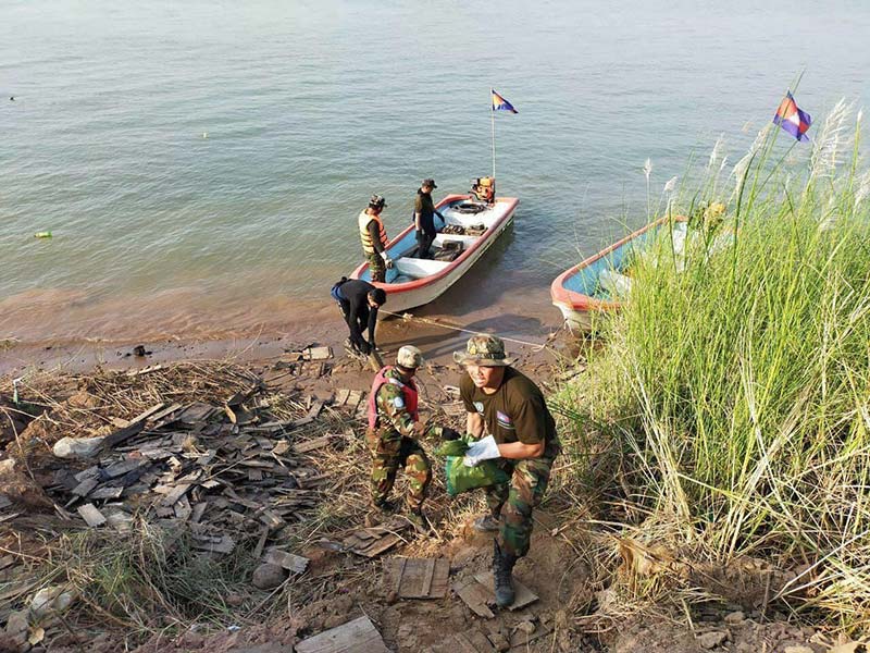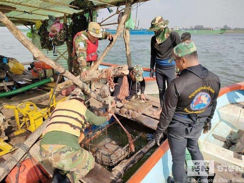 កំពង់ចាម : គ្រាប់ យុទ្ធភ័ណ មិន ទាន់ ផ្ទុះ សរុប ជាង ៦តោន រួមនឹង សំភារៈ មួយ ចំនួន ត្រូវ បានកងកម្លាំងបោសសម្អាត ស្រង់ចេញពី ខ្មោច នាវាច្បាំង បន្សល់ ទុក ពី សម័យ សាធារណរដ្ឋ ខ្មែរ ឆ្នាំ ១៩៧០-១៩៧៥ ដែល គេ រកឃើញ នៅក្នុង ទឹក ទន្លេមេគង្គ ស្ថិត ក្នុង ភូមិវាល ឃុំមានជ័យ ស្រុក ស្រីសន្ធរ ខេត្ត កំពង់ចាម ។