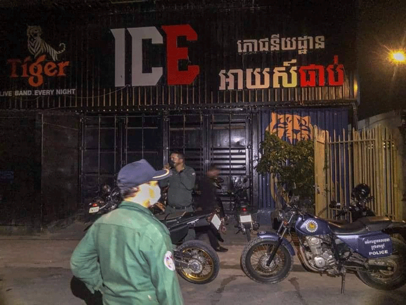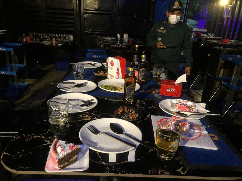 លោកវរសេនីយ៍ឯក ឡាក់ម៉េងធី អានបន្តថានៅថ្ងៃទី២៦ ខែតុលា ឆ្នាំ២០២១ វេលាម៉ោង ៩យប់ប៉ូលិសបានទទួលព័ត៌មានថា ទីតាំងភោជនីយដ្ឋានមួយកន្លែង យីហោ «អាយផាប់» លបលួចបើកអាជីវកម្មផឹកស៊ីច្រៀងរាំ និងមានភ្ញៀវចូលហូបចុកជួបជុំគ្នាជាច្រើននាក់។ ក្រោយពីទទួលបានព័ត៌មានភ្លាម កម្លាំងប៉ូលិសការិយាល័យព្រហ្ម ទណ្ឌកម្រិតស្រាល សហការជាមួយកម្លាំងប៉ូលិសក្រុងតាខ្មៅ បានចុះទៅដល់កន្លែងកើតហេតុ ធ្វើការបង្រ្កាបអ្នកជួបជុំផឹកស៊ីនៅក្នុងហាង។