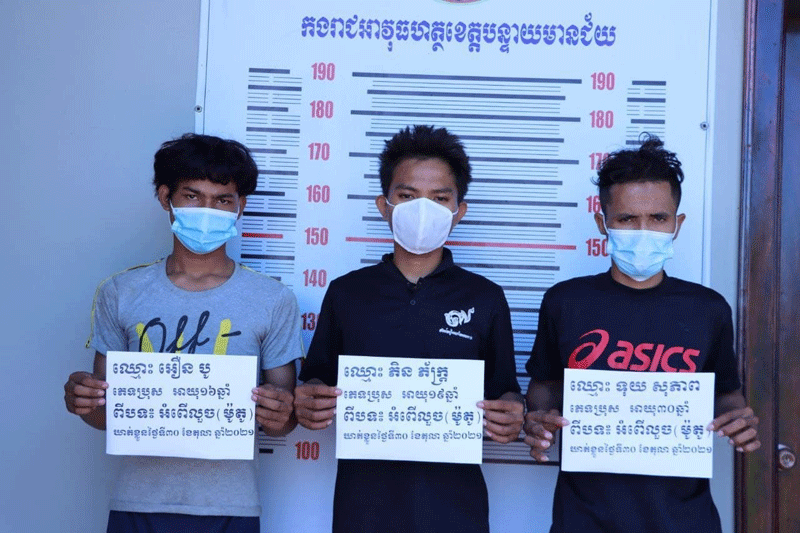 លោកវរសេនីយ៍ត្រី នួន នីណរ៉ូ មេបញ្ជាការមួលដ្ឋានកងរាជអាវុធហត្ថ ក្រុងប៉ោយប៉ែត បានប្រាប់ថា ជនសង្ស័យទី1 ឈ្មោះ កិន ភ័ក្ត្រ ភេទប្រុស អាយុ 19ឆ្នាំ 2.អឿន បូ ភេទប្រុស អាយុ 16ឆ្នាំ 3.ឈ្មោះ នាង វិបុល ហៅឡុង ភេទប្រុស អាយុ41ឆ្នាំ ទាំង3នាក់ខាងលើ រស់នៅក្នុង សង្កាត់ប៉ោយប៉ែត ក្រុងប៉ោយប៉ែត ខេត្តបន្ទាយមានជ័យ និងទី4.ឈ្មោះ ទុយ សុភាព ភេទប្រុស អាយុ30ឆ្នាំ រស់នៅឃុំនិមិត្ត ស្រុកអូរជ្រៅ ខេត្តបន្ទាយមានជ័យ។