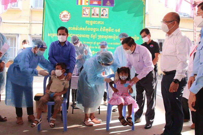 ខេត្តស្វាយរៀង៖នាព្រឹកថ្ងៃចន្ទ១១រោច ខែអស្សុជ ឆ្នាំឆ្លូវ ត្រីស័ក ព.ស ២៥៦៥ ត្រូវនឹងថ្ងៃទី០១ ខែវិច្ឆិកា ឆ្នាំ២០២១នេះ ឯកឧត្តម ម៉ែន វិបុល អភិបាល នៃគណៈអភិបាលខេត្តស្វាយរៀង បានអញ្ជើញជាអធិបតីក្នុងពិធីបើកយុទ្ធនាការចាក់វ៉ាក់សាំបង្ការជំងឺកូវីដ១៩ ជូនដល់កុមារមានអាយុ៥ឆ្នាំ នៅក្នុងភូមិសាស្ត្រខេត្តស្វាយរៀង។