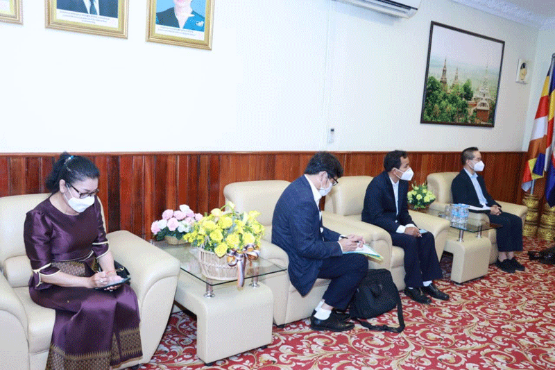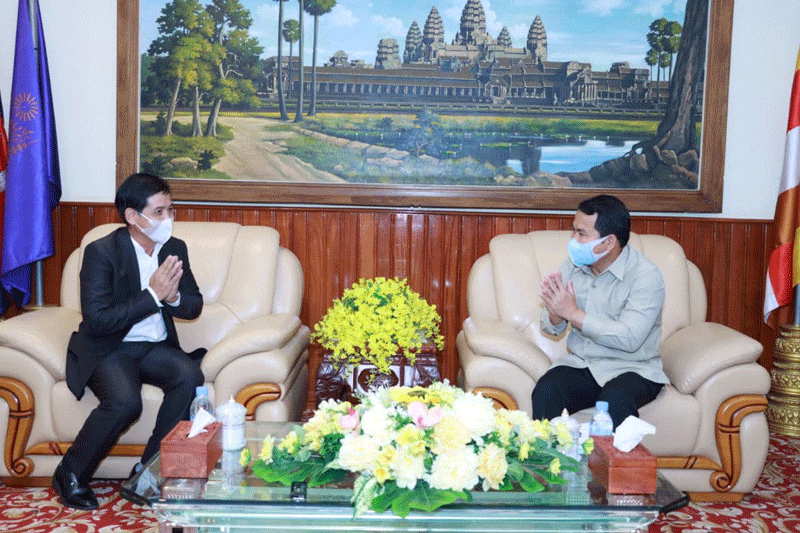 ខេត្តកណ្ដាល៖ នៅព្រឹកថ្ងៃទី០២ ខែវិច្ឆិកា ឆ្នាំ២០២១ ឯកឧត្តម គង់ សោភ័ណ្ឌ អភិបាល នៃគណៈអភិបាលខេត្តកណ្ដាល អនុញ្ញាតឱ្យប្រតិភូរដ្ឋករទឹកស្វយ័តក្រុងភ្នំពេញ ដឹកនាំដោយឯកឧត្តម ឡុង ណារ៉ូ អគ្គនាយករដ្ឋករទឹកស្វយ័តក្រុងភ្នំពេញ ចូលជួបសំដែងការគួរសម នៅសាលាខេត្តកណ្ដាល។