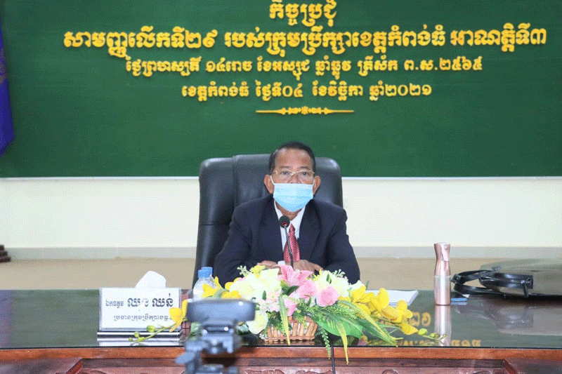 កំពង់ធំ: ថ្ងៃទី៤ ខែវិច្ឆិកា ឆ្នាំ២០២១ ក្រុមប្រឹក្សាខេត្តកំពង់ធំ បើកកិច្ចប្រជុំសាមញ្ញលើកទី ២៩ អាណត្តិទី ៣ ក្រោមអធិបតីភាពឯកឧត្តម ឈុន ឈន់ ប្រធានក្រុមប្រឹក្សាខេត្ត និងឯកឧត្តម ងួន រតន: អភិបាលខេត្តកំពង់ធំ ដោយមានការអញ្ជើញចូលរួម ពីឯកឧត្តម លោកជំទាវសមាជិកក្រុមប្រឹក្សាខេត្ត គណៈអភិបាលខេត្ត លោកនាយក នាយករងរដ្ឋបាលសាលាខេត្ត នាយក- ទីចាត់ការសាលាខេត្ត ចំណែកឯ ប្រធាន-អនុប្រធានមន្ទីរអង្គភាពជុំវិញខេត្ត និងមន្ត្រីពាក់ព័ន្ធចូលរួមតាមរយៈប្រព័ន្ធវីដេអូ Zoom។