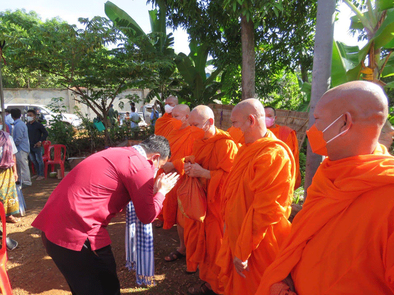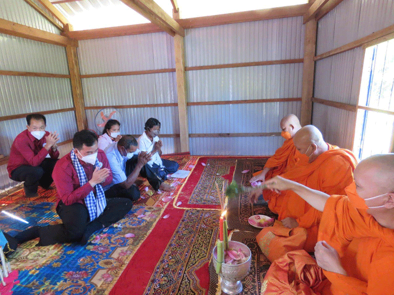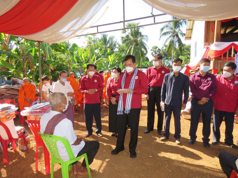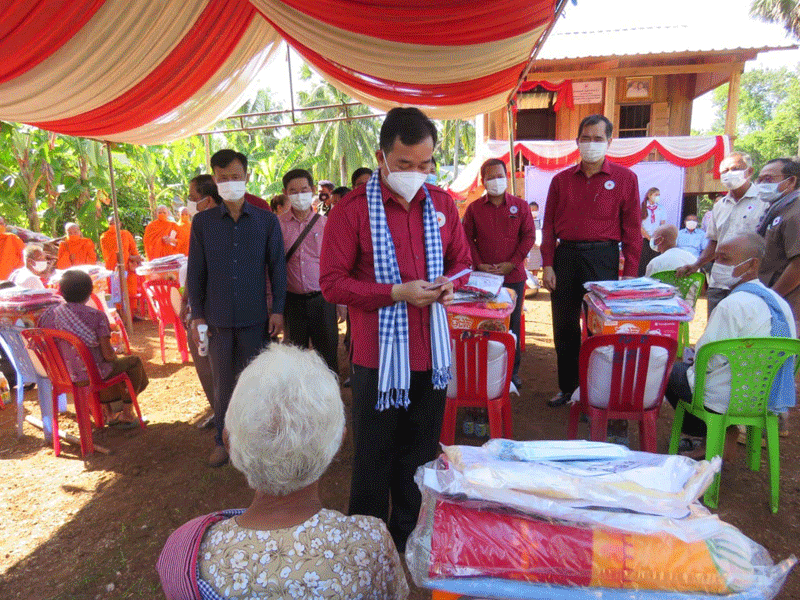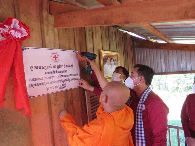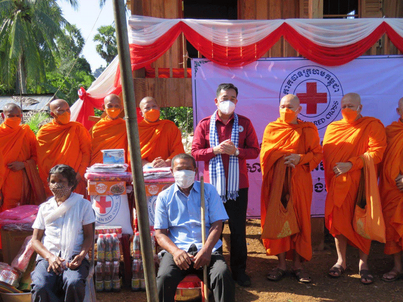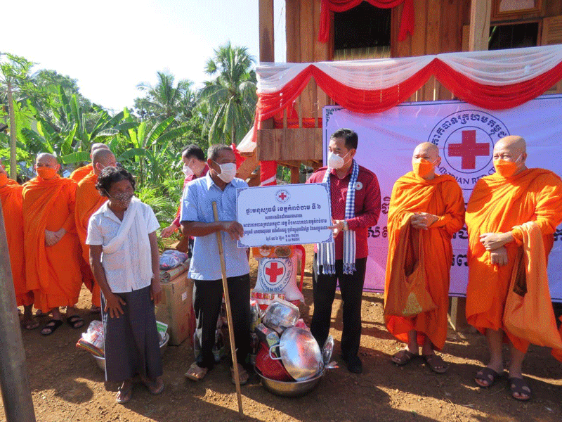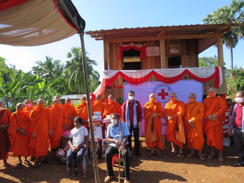 កំពង់ចាម : ឯកឧត្តម អ៊ុន ចាន់ដា អភិបាលខេត្តកំពង់ចាម និងជាប្រធានគណៈកម្មាធិការសាខា កាកបាទក្រហម ខេត្ត អមដំណើរដោយ ព្រះមន្ត្រីសង្ឃ និង មន្ត្រី រាជការ នាព្រឹក ថ្ងៃទី ៥ ខែវិច្ឆិកា ឆ្នាំ ២០២១ នេះ បានប្រគល់ផ្ទះមនុស្សធម៌ទី៦ ជូន ជនមានពិការភាពទ័លក្រ ១គ្រួសារ ឈ្មោះឈុន ម៉េន អាយុ៦៣ឆ្នាំ រស់នៅ ភូមិអំពិលទ្វារ ឃុំសំពងជ័យ ស្រុកជើងព្រៃ។