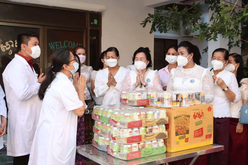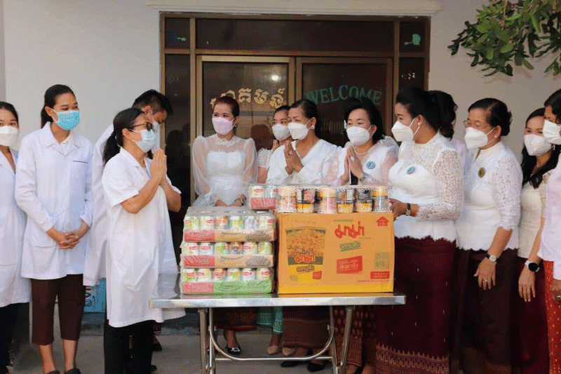 កំពង់ចាម : លោកជំទាវ ញូង ចរិយា អ៊ុន ចាន់ដា ប្រធានកិត្តិយសសាខាសមាគមនារីខេត្ត អមដំណើរដោយលោកជំទាវ ប៉ាង ដានី អភិបាលរងខេត្ត និងជាប្រធានប្រតិបត្តិសាខា សមាគមនារីកម្ពុជា ដើម្បីសន្តិភាព និងអភិវឌ្ឍន៍ ខេត្តកំពង់ចាម និងសហការីក្រោមឱវាទ ព្រមទាំងលោកជំទាវ សមាជិកព្រឹទ្ធសភា-រដ្ឋសភា កាលពីថ្ងៃទី០៦ ខែវិច្ឆិកា ឆ្នាំ២០២១ នេះ បានអញ្ជើញសួរសុខទុក្ខ និងនាំអំណោយផ្ដល់ជូន ក្រុមគ្រូពេទ្យកំពុងព្យាបាលអ្នកជម្ងឺកូវីដ ១៩ នៅមន្ទីពេទ្យមេគង្គកំពង់ចាម ។