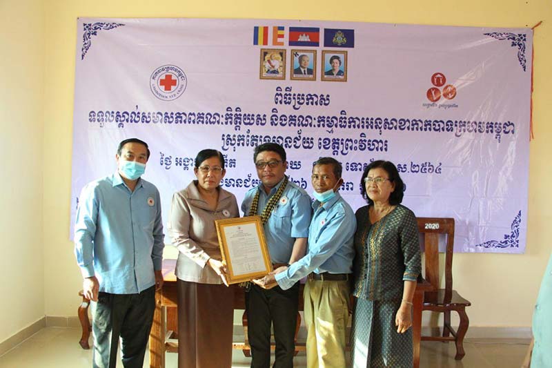 ព្រះវិហារៈ នៅព្រឹកថ្ងៃទី២៧ ខែមករា ឆ្នាំ២០២១ នេះសាខាកាកបាទក្រហមកម្ពុជាខេត្តព្រះវិហារ បានរៀបចំពិធីប្រកាស ទទួលស្គាល់សមាសភាពគណៈកិត្តិយស គណៈកម្មាធិការអនុសាខាស្រុកឆែប ក្រុមកាកបាទក្រហមកម្ពុជាឃុំ និងអ្នកស្ម័គ្រចិត្តភូមិ ប្រចាំអនុសាខាកាកបាទក្រហមកម្ពុជា ក្រោមអធិបតីភាព លោកជំទាវ ចឹក ហេង អនុប្រធានអចិន្ត្រៃយ៍សាខា តំណាងឯកឧត្តម ប្រាក់ សុវណ្ណ ប្រធានគណៈកម្មាធិការសាខាកាកបាទក្រហមកម្ពុជា ខេត្តព្រះវិហារ ដែលពិធីនេះប្រារព្វធ្វើឡើងនៅ សាលាស្រុកឆែប។ នៅក្នុងឱកាសនោះដែរលោកជំទាវ ចឹក ហេង អនុប្រធានអចិន្ត្រៃយ៍សាខាកាក បាទក្រហមកម្ពុជា ខេត្តព្រះវិហារ បានពាំនាំនូវប្រសាសន៍ផ្តាំផ្ញើសាកសួរសុខទុក្ខ ពីសម្តេចកិត្តិព្រឹទ្ធបណ្ឌិត ប្រធានកាកបាទក្រហមកម្ពុជា និងបានផ្តាំផ្ញើសូមជូនសមាជិក សមាជិកា អនុសាខាទាំងអស់ ត្រូវ បន្តរក្សាសាមគ្គីផ្ទៃក្នុងអោយបានកាន់តែជិតស្នទ្ធ និងសុខដុមរមណីកម្ម ។ បន្តពង្រឹងសមត្ថភាពមន្ត្រីអនុសាខា ។ បន្តពង្រឹងកិត្តិនាមរបស់កាកបាទក្រហមកម្ពុជា បំពេញ ការងារតាមគោលការណ៍ទាំង៧ របស់ចលនា ធ្វើសកម្មភាពដូចភ្លៀងរលឹម ។ បន្តពង្រឹង ពង្រីកកម្លាំងយុវជន អ្នកស្ម័គ្រចិត្តកាកបាទ ក្រហមកម្ពុជា អោយនៅតែជាបណ្តាញដ៏រឹងមាំ និងជាកម្លាំងចលករនៃសេវាកម្មមនុស្សធម៌ មាននិរន្តរភាព និងប្រកបដោយប្រសិទ្ធភាព ។ បន្តការគាំទ្រ ពង្រឹង ពង្រីក សមាជិកភាព និងកៀរគរសប្បុរសជន បន្តលើកកម្ពស់ចងក្រងឯកសារ ថែទាំសមិទ្ធផលរបស់កាកបាទ ក្រហមកម្ពុជា ដែលផ្តល់ជូនសហគមន៍ ។ បន្តពង្រឹង និងលើកកម្ពស់របបរាយការណ៍ សកម្មភាព និងរបាយ ការណ៍វឌ្ឍនភាពរបស់អនុសាខា និងផ្តល់របាយការណ៍ មកសាខាអោយបានទាន់វេលា ។ បន្ទាប់មក ឯកឧត្តម យ៉ុង គឹមហ៊ាន នាយកប្រតិបត្តិសាខា ក៏បានធ្វើការផ្សព្វផ្សាយពីគោលការណ៍គ្រឹះរបស់កាកបាទ ក្រហមកម្ពុជា ជូនដល់សមាជិក សមាជិកា គណៈកិត្តិយសគណៈ កម្មាធិការអនុសាខា ក្រុមកាកបាទក្រហមកម្ពុជាសង្កាត់ អ្នកស្ម័គ្រចិត្តកាកបាទក្រហមកម្ពុជាប្រចាំភូមិ ផងដែរ ។