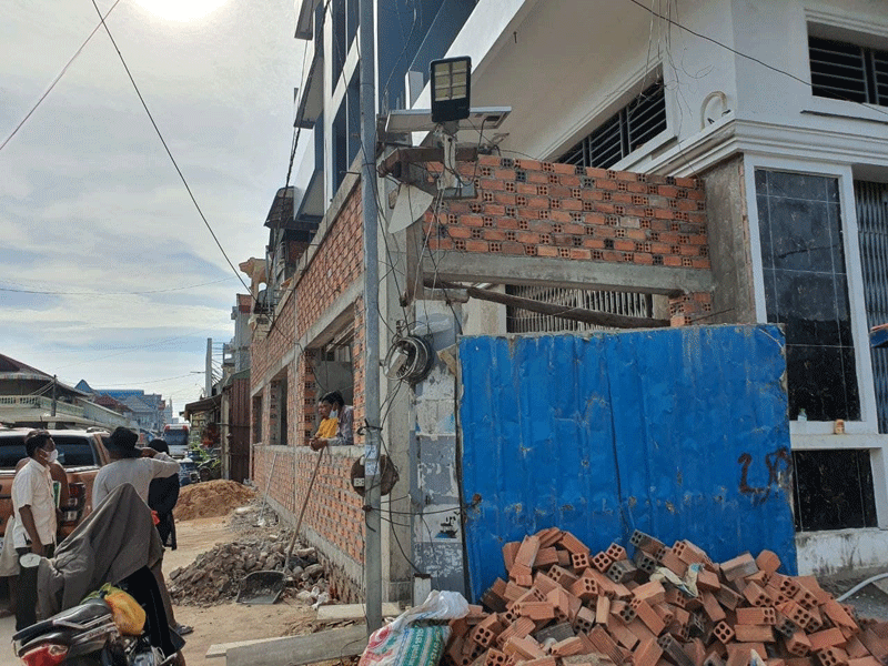 បន្ទាយមានជ័យ៖ សំណង់រឹងសងរៀបជាឥដ្ឋ20 ជារបស់ម្ចាស់ផ្ទះ ឈ្មោះ ម៉ែន ណារិន (ប្រុស) នៅព្រឹកថ្ងៃទី11ខែវិច្ឆិកា ឆ្នាំ2021នេះ ត្រូវក្រុមការងារចម្រុះ ចុះត្រួតពិនិត្យឃើញថាកំពុងសាងសង់ចូលដីចំណីផ្លូវសាធារណរបស់រដ្ឋ ចំណុចផ្លូវកែង ទល់មុខចំណតរថយន្ត ស្ថិតនៅក្នុងភូមិបាលិលេយ្យមួយ សង្កាត់.ក្រុងប៉ោយប៉ែត តម្រូវអោយរុះរើចេញវិញជាកំហិត បើមិនស្តាប់តាមណែនាំ និងចាត់ការតាមនីតិវិធី។