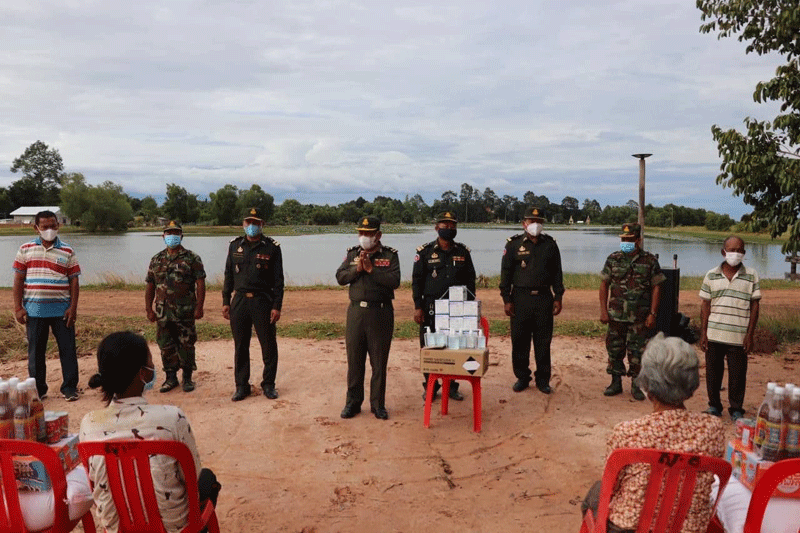 ឧត្ដមសេនីយ៍ទោ សោម ស៊ុន បានបញ្ជាក់ថា៖ អំណោយដែលបានចែកជូនបងប្អូនប្រជាពលរដ្ឋ និងក្រុមគ្រួសារអតីតយុទ្ធជននាពេលនេះ ជាអំណោយរបស់ឯកឧត្តមឧត្តមសេនីយ៍ឯក ហ៊ុន ម៉ាណែត និងលោកជំទាវ ពេជ្រ ចន្ទមុន្នី ដែលបានផ្ដល់តាមរយៈមេបញ្ជាការតំបន់ប្រតិបត្តិការសឹករងកំពង់ធំ ដោយក្នុងមួយគ្រួសារទទួលបាននូវអង្ករ២៥គីឡូក្រាម.មីចំនួន០១កេស.ទឹកត្រីចំនួន០១យួរនិង ត្រីខកំប៉ុងចំនួន០១យួរ សម្រាប់ជួយដោះស្រាយជូនបងប្អូនអតីតយុទ្ឋជននិងប្រជាពលរដ្ឋយើង បានមួយគ្រាផងដែរ ដោយមិនទុកឲ្យបងប្អូនណាម្នាក់ដាច់ពោះស្លាប់ ដោយដឹងហើយមិនបានដោះ ស្រាយនោះឡើយ និងបានឧបត្ថម្ភម៉ាស់បួនស្រទាប់ចំនួន ១០ ប្រអប់ និងជែលលាងសំអាតដៃចំនួន ២០ដប ជូនលោកមេភូមិសម្រាប់ប្រើប្រាស់ ក្នុងវិធានការ ការពារទប់ស្កាត់ការឆ្លងជំងឺកូវីដ-១៩ផង ដែរ