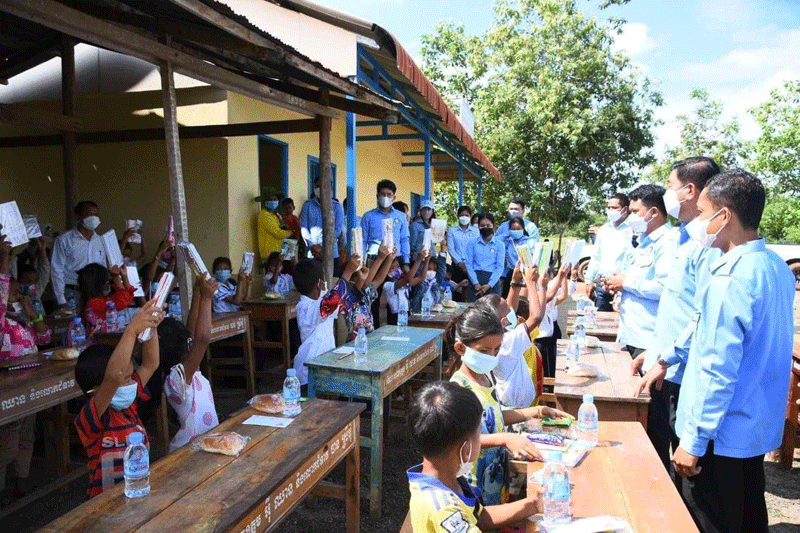 សម្ភារសិក្សាចែកជូនដល់សិស្សានុសិស្ស លោកគ្រូអ្នកគ្រូចំនួន១២៣នាក់ ដែលមាន សៀវភៅ ប៊ិច ខ្មៅដៃ ទឹកលុប បន្ទាត់ នំ ទឹកសុទ្ធ ម៉ាស និងថវិការមួយចំនួនផងដែរ៕
