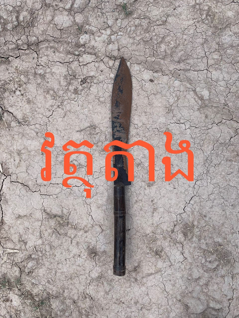 វត្ថុតាងចាប់យករួមមាន កាំបិតកញ្ចែត ដងធ្វើពីឫស្សីផ្លែដែកប្រវែង៥៥ស.ម. ចំនួនមួយ, ញញួរធ្វើពីឈើផ្លែដែកប្រវែង ៣៤ស.ម. ចំនួនមួយ(បាក់ជាពីរកំណាត់),នាឡិកា ម៉ាក OTS ក្បាលនិងខ្សែពីដែកដាច់គន្លឹះចំនួនមួយ, ស្បែកជើងស៊កធ្វើពីជ័រពណ៌ខ្មៅ១ចំហៀងខាងស្ដាំ, បារី ម៉ាក Crown ចំនួន ០១ កញ្ចប់និងដែកកេះ ចំនួនមួយ។