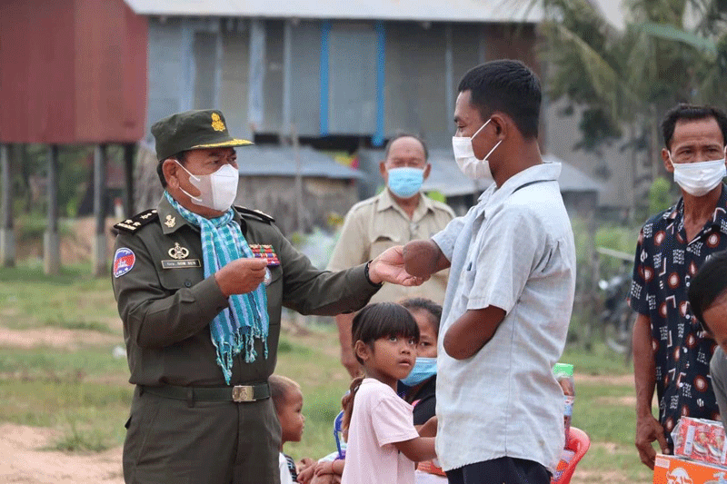 អំណោយរបស់ឯកឧត្តម ឧត្តមសេនីយ៍ឯក ហ៊ុន ម៉ាណែត អគ្គមេបញ្ជាការរងនៃកងយោធពល ខេមរភូមិន្ទ មេបញ្ជាការកងទ័ពជើងគោក ដែលបានឧបត្ថម្ភជូនគាត់នៅពេលនេះ ដោយក្នុងមួយគ្រួសារ ទទួលបាននូវអង្ករចំនួន៣០គីឡូក្រាម មីជាតិចំនួន១កេស ទឹកត្រីចំនួន១យូរ និងត្រីខកំប៉ុងចំនួន១យួរ ផងដែរ ។