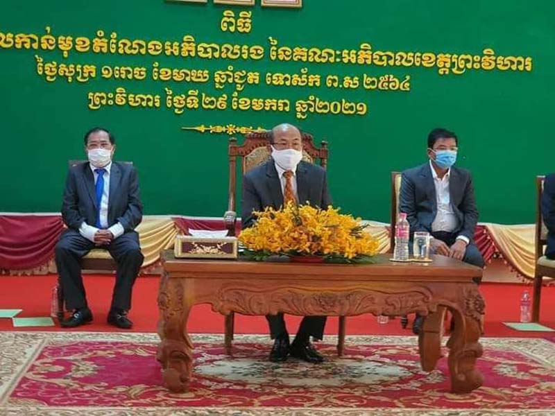 ព្រះវិហារៈ នារសៀលថ្ងៃទី២៩ខែកុម្ភៈ ឆ្នាំ២០២១នេះ រដ្ឋបាលខេត្តព្រះវិហារ បានរៀបចំពិធីប្រកាសចូលកាន់មុខតំណែងអភិបាលរង នៃគណៈអភិបាលខេត្តព្រះវិហារ លោកស្រី ប៉ាង រ៉ាវី ក្រោមអធិបតីភាពឯកឧត្តម លេង វី រដ្ឋលេខាធិការក្រសួងមហាផ្ទៃ តំណាងដ៏ខ្ពង់ខ្ពស់សម្តេចក្រឡាហោម ស ខេង ឧបនាយករដ្ឋមន្រ្តី រដ្ឋមន្រ្តីក្រសួងមហាផ្ទៃ ដោយមានការចូលរួមពីឯកឧត្តមលោកជំទាវអនុរដ្ឋលេខាធិការក្រសួងមហាផ្ទៃ ឯកឧត្តម ប្រាក់ សុវណ្ណ អភិបាលនៃគណៈអភិបាលខេត្ត ឯកឧត្តមប្រធានក្រុមប្រឹក្សាខេត្តស្តីទី សមាជិកក្រុមប្រឹក្សាខេត្ត អភិបាលរងខេត្ត លោក លោកស្រីប្រធានមន្ទីរ អង្គភាពជុំវិញខេត្ត លោកប្រធានក្រុមប្រឹក្សា អភិបាលក្រុង ស្រុក និងមន្រ្តីរាជការសាលាខេត្តជាច្រើនរូប នៅសាលប្រជុំសាលាខេត្តព្រះវិហារ ។ មានប្រសាសន៍ស្វាគមន៍នាឱកាសនោះ ឯកឧត្តម ប្រាក់ សុវណ្ណ អភិបាលខេត្ត ថ្លែងអំណរគុណដល់ឯកឧត្តមរដ្ឋលេខាធិការ ដែលបានអញ្ជើញផ្តល់កិត្តិយសជាអធិបតីភាពក្នុងពិធីប្រកាស់ចូលកាន់តំណែងនាពេលនេះ និងបានជម្រាបជូននូវសមិទ្ធផល ការអភិវឌ្ឍនានាក្នុងខេត្តព្រះវិហារ ព្រមទាំងវិស័យដែលជាសក្កានុពលរបស់ខេត្តព្រះវិហារ និងវិស័យកសិកម្ម និងវិស័យទេសចរណ៍ដែលបានរួមចំណែកក្នុងលើកស្ទួយជីវភាពរបស់ប្រជាពលរដ្ឋក្នុងខេត្ត ឲ្យកាន់តែប្រសើរឡើង។ ដោយឡែកចំពោះវិស័យសុខាភិបាលមានសេវាថែទាំសុខភាពប្រជាពលរដ្ឋបានពង្រីកទៅដល់មូលដ្ឋាននៅទូទាំងខេត្ត សរុបចំនួន ៤៩ កន្លែងដោយទទួលពិនិត្យ និងថែទាំព្យាបាលជំងឺលើផ្នែកសុខភាពបន្តពូជយុវវ័យ មាតា ទារក កុមារ និងអាហារូបត្ថម្ភ ផ្នែកប្រយុទ្ធនឹងជំងឺឆ្លង និងជំងឺមិនឆ្លង ព្រមទាំងបញ្ហាសុខភាពសាធារណៈ ដ៏ទៃទៀត ។ ជាមួយនឹងនេះដែរឯកឧត្តមអភិបាលបានជម្រាបជូនគណៈអធិបតីនៃការទប់ស្កាត់ការរីករាលដាលជំងឺកូវីដ១៩ នៅខេត្តព្រះវិហារ គិតត្រឹម ថ្ងៃទី ២៨ ខែមករា ឆ្នាំ២០២១ បានធ្វើតេស្តសំណាកចំនួន ៨៩៥នាក់ ស្រី ៣១៩នាក់ ក្នុងនោះ លទ្ធផលអវិជ្ជមានចំនួន ៨៤៥នាក់ ស្រី ៣០៤នាក់ និងលទ្ធផលវិជ្ជមាន ០២នាក់ (ជាសះស្បើយ និងបានវិលត្រឡប់ទៅលំនៅដ្ឋានវិញ ) ។ ចំពោះស្ថិតិប្រជាពលរដ្ឋមកពីក្រៅប្រទេស និងការធ្វើចត្តាឡីស័ក ៖រដ្ឋបាលខេត្តបានតាមដានជាប្រចាំថ្ងៃនូវចំនួនអ្នកបានវិលត្រឡប់មកពីក្រៅប្រទេស ហើយគិតត្រឹម ថ្ងៃទី ២៨ ខែមករា ឆ្នាំ២០២១ ចំនួនអ្នកមកពីប្រទេសនានាសរុបចំនួន ៩៦៥នាក់ ស្រី ៤២៣នាក់ និងអ្នកបានធ្វើចត្តាឡីស័កសរុបចំនួន ៩៥៥នាក់ ក្នុងនោះ ធ្វើចត្តាឡីស័កដោយ រដ្ឋបាលថ្នាក់ក្រោមជាតិចំនួន ៥២៦នាក់ និងធ្វើចត្តាឡីស័កដោយខ្លួនឯងចំនួន ៤៣៩នាក់ ។លើសពីនេះទៀតរដ្ឋបាលខេត្តបានរៀបចំនូវទីតាំងធ្វើចត្តាឡីស័កនៅតាមក្រុងស្រុក និងទីតាំងធំចំនួន៤ទីតាំង ទៀត ដ