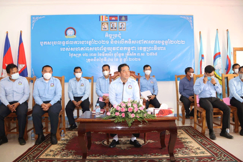 ក្រោយពីបានស្តាប់របាយការណ៍របស់ឯកឧត្តម យ៉ុង គឹមហ៊ាន ប្រធាន ស.ស.យ.ក ខេត្តព្រះវិហាររួចមក ឯកឧត្តម អ៊ុន ចាន់ដា សមាជិកអចិន្ត្រៃ ស.ស.យ.ក ថ្នាក់កណ្តាលទទួលបន្ទុកខេត្តព្រះវិហារ បានថ្លែងកោតសរសើរនិងវាយតម្លៃខ្ពស់ ដល់សមាជិកសមាជិការ ស.ស.យ.ក ខេត្តព្រះវិហារទាំងអស់ដែលបានលះបង់កម្លាំង កាយចិត្តបម្រើផលប្រយោជន៍ដល់សង្គមជាតិ។