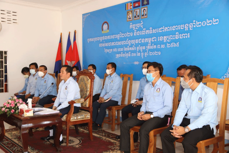 ព្រះវិហារ៖នៅព្រឹកថ្ងៃទី៣១ ខែធ្នូឆ្នាំ២០២១នេះ សហភាពសហព័ន្ធយុវជនកម្ពុជាខេត្តព្រះវិ ហារ បានរៀបចំកិច្ចប្រជុំបូលសរុបលទ្ធផលការងារប្រចាំឆ្នាំ២០២១និងលើកទិសដៅការងារ បន្តឆ្នាំ២០២២ ក្រោមអធិបតីភាពឯកឧត្តម អ៊ុន ចាន់ដា អភិបាលនៃគណៈអភិបាលខេត្តកំពង់ ចាមនិងជាសមាជិកអចិន្ត្រៃ ស.ស.យ.ក ថ្នាក់កណ្តាលទទួលបន្ទុកខេត្តព្រះវិហារ ឯកឧត្តម យ៉ុង គឹមហ៊ាន ប្រធាន ស.ស.យ.ក ខេត្តព្រះវិហារ ព្រមទាំងមានការចូលរួមពីប្រធាន អនុប្រធាន សមាជិកសមាជិការ តាមបណ្តាក្រុងស្រុកទាំង៨ទូទាំងខេត្តព្រះវិហារ.