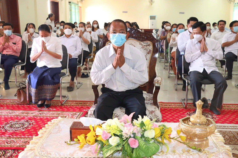 កំពង់ធំ៖ រសៀលថ្ងៃទី៣១ ខែធ្នូ ឆ្នាំ២០២១នេះ លោកងួន រតនៈ អភិបាលខេត្តកំពង់ធំ លោកឈុន ឈន់ ប្រធានក្រុមប្រឹក្សាខេត្តកំពង់ធំ និងមន្ត្រីជាច្រើនរូប នៃសាលាខេត្តទាំងអស់ បានជួបសំណេះសំណាល និងនិមន្តព្រះសង្ឃប្រោះព្រំសិរីសួស្តីឆ្នាំថ្មី ២០២១ ឈានចូលឆ្នាំ២០២២ខាងមុនដ៏ខ្លីនេះ ។