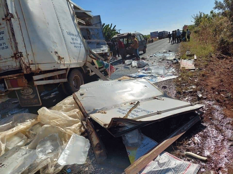 ខេត្តស្ទឹងត្រែង៖ មនុស្សពីរនាក់បានស្លាប់ និងពីរនាក់ទៀតរងរបួសធ្ងន់ និងស្រាល នៅក្នុងហេតុការណ៍គ្រោះថ្នាក់ចរាចរណ៍មួយ ដែលបានកើតឡើងរវាងរថយន្តធន់ធំ វេអង យីឌុបផ្លូវប្រាំ បុកជាមួយរថយន្តហ៊ីយ៉ាន់ដាយដឹកទឹកកក នៅវេលាម៉ោងជាង ៩ព្រឹក ថ្ងៃទី២ ខែមករា ឆ្នាំ២០២២ នៅលើកំណាត់ផ្លូវជាតិលេខ៩ ស្ថិតនៅក្នុងភូមិសំអាង ឃុំសំអាង ស្រុកថាឡាបរិវ៉ាត់ ខេត្តស្ទឹងត្រែង។