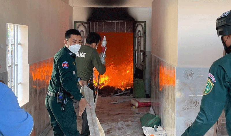 កណ្តាល ៖ មានហេតុការណ៍គ្រោះអគ្គិភ័យភ្លើងឆេះផ្ទះ១ខ្នង កើតឡើងនៅក្នុងភូមិដើមគរ សង្កាត់ដើមមៀន ក្រុងតាខ្មៅ ខេត្តកណ្ដាល នាព្រឹកថ្ងៃចន្ទ ទី០៣ ខែមករា ឆ្នាំ២០២២ ដែលដឹកនាំដោយ លោកឧត្តមសេនីយ៍ទោ ឈឿន សុចិត្ត ស្នងការនគរបាលខេត្តកណ្តាល ចុះប្រតិបត្តិការបញ្ជាដោយផ្ទាល់។