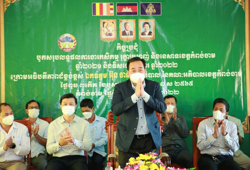 កំពង់ចាម : អភិបាលនៃគណៈអភិបាលខេត្តកំពង់ចាម ឯកឧត្តម អ៊ុន ចាន់ដា បាន ណែនាំ ដល់មន្ត្រីនៃ មន្ទីរ កសិកម្ម ត្រូវត្រៀមលក្ខណៈ និងសម្ភារទុកជាមុនសម្រាប់ចុះជួយអន្តរាគមន៍ ពេលមានគ្រោះធម្មជាតិកើតឡើង ជាពិសេសគ្រោះខ្វះទឹក ព្រមទាំងសហការល្អជាមួយអជ្ញាធរមូលដ្ឋាន ដើម្បីធ្វើការផ្សព្វផ្សាយដល់កសិករឲ្យចេះគ្រប់គ្រងទឹក ដោយលើកភ្លឺ លើកទំនប់ទប់ស្កាត់ និងស្តុកទឹកទុកការពារគ្រោះខ្វះទឹកជាយថាហេតុ ។ ការថ្លែង យ៉ាង ដូច្នេះ ក្នុង កិច្ចប្រជុំ បូកសរុប លទ្ធផល ការងាររបស់មន្ទីរកសិកម្ម រុក្ខាប្រមាញ់ និងនេសាទខេត្តកំពង់ចាម នារសៀល ថ្ងៃទី ៥ ខែមករា ឆ្នាំ ២០២២ ។