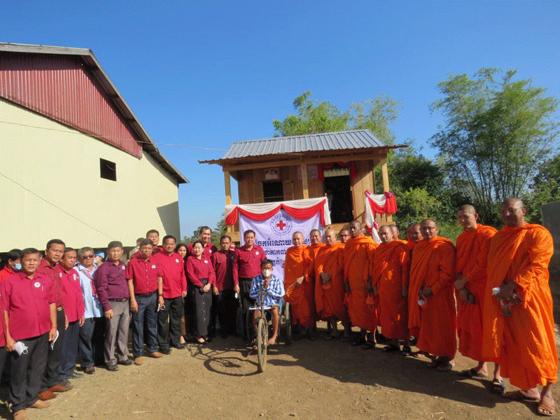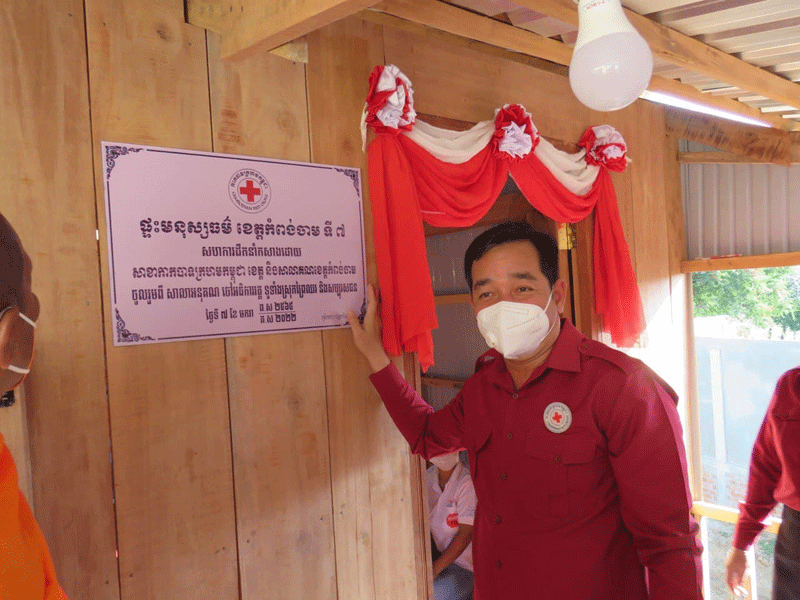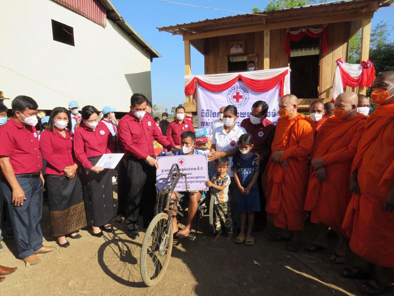 កំពង់ចាម : ឯកឧត្តម អ៊ុន ចាន់ដា អភិបាលខេត្តកំពង់ចាម និងជាប្រធានគណៈកម្មាធិការសាខា កាកបាទក្រហម ខេត្ត ដោយ មានការចូលរួមពីព្រះមន្ត្រីសង្ឃ និង មន្ត្រី រាជការ នាព្រឹក ថ្ងៃទី ៧ ខែមករា ឆ្នាំ ២០២២ នេះ បានប្រគល់ផ្ទះមនុស្សធម៌ទី៧ ជូន ជនមានពិការភាពទ័លក្រ ១គ្រួសារ ឈ្មោះសុខ សុភាព អាយុ ៣៦ឆ្នាំ រស់នៅ ភូមិកកោះ ឃុំត្រពាំងព្រះ ស្រុកព្រៃឈរ។
