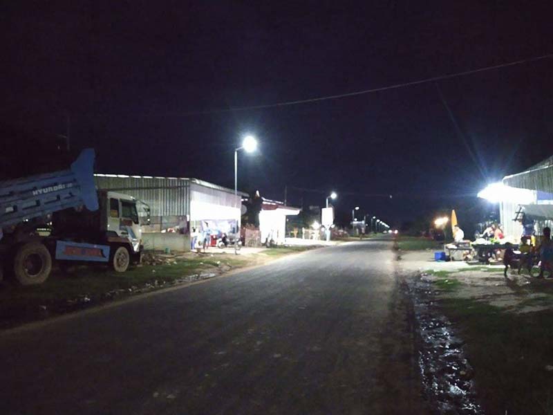 ប្រជាពលរដ្ឋនៅស្រុកចន្ទ្រាដែលធ្វើដំណើរតាមដងផ្លូវនានាពេលយប់មានចិត្តសប្បាយរីករាយយ៉ាងខ្លាំងដែលអាជ្ញារធរស្រុកចន្ទ្រាបានដាក់បង្គោលភ្លើងបំភ្លឺ(សូឡា)តាមដងផ្លូវសាធារណៈនៅតាមទីប្រជុំជននានាក្នុងស្រុកចន្ទ្រាដែលមានភ្លើងបំភ្លឺ(សូឡា)អមនៅតាមផ្លូវនាពេលយប់ រក្សារបាននូវសុវត្ថិភាពសន្តិសុខ និងជាការលម្អទីប្រជុំជនដូចជាទីក្រុងផងដែរ ហើយបើយើងក្រឡេកមើលកាលពីប៉ុន្មានឆ្នាំមុនមកដល់បច្ចុប្បន្ននេះទៅទីប្រជុំជននានាក្នុងស្រុកចន្ទ្រា ពុំមានភ្លើងបំភ្លឺផ្លូវទេ មានភ្លើងអគ្គិសនីតាមផ្ទះប្រជាពលរដ្ឋបើកភ្លើងប៉ុណ្ណោះ។ក៏ប៉ុន្តែចាប់ពី លោក ថន ថាវុទ្ធា អភិបាលនៃគណៈអភិបាលស្រុកចន្ទ្រា មកកាន់តំណែងអភិបាលស្រុកចន្ទ្រា រហូតពេលនេះនៅទីក្នុងស្រុកចន្ទ្រា ទាំងមូលមានការអភិវឌ្ឍន៍ហើយអាជ្ញាធរស្រុកបានដាក់បង្គោលភ្លើងបំភ្លឺតាមដងផ្លូវនៅតាមទីប្រជុំជននិងតាមឃុំនានាគឺភ្លឺពេញមួយយប់តែម្តង។