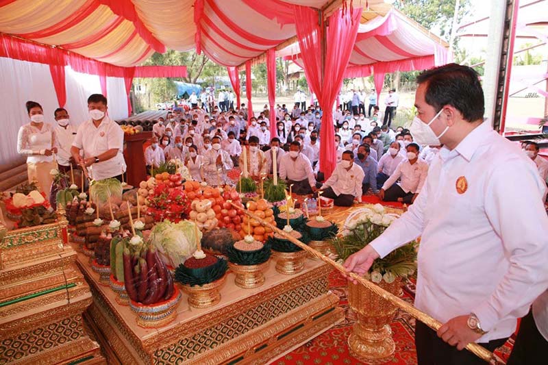 កំពង់ចាម : ឯកឧត្ដម ហ៊ុន ម៉ានិត សមាជិកគណកម្មាធិការកណ្តាល គណបក្សប្រជាជនកម្ពុជា និងជាប្រធានក្រុមការងារចុះជួយស្រុកចំការលេី និង ឯកឧត្តម អ៊ុន ចាន់ដា សមាជិកគណៈកម្មធិការកណ្ដាល និងប្រធានគណបក្សប្រជាជនកម្ពុជា ខេត្តកំពង់ចាម បាន អញ្ជើញចូលរួមពិធីក្រុងពាលីបញ្ចុះបឋមសិលាសាងសង់អាគារ ទីស្នាក់ការ គណបក្សប្រជាជន កម្ពុជា ស្រុកចំការលើ ដែល ពិធី នេះ ត្រូវបាន ប្រារព្ធ ឡើង នាព្រឹក ថ្ងៃទី ១៣ ខែមករា ឆ្នាំ ២០២២ ដោយមានការ អញ្ជើញ ចូលរួម ពី ថ្នាក់ដឹកនាំ សមាជិក សមាជិកា គណបក្សប្រជាជន កម្ពុជា ផងដែរ ។
