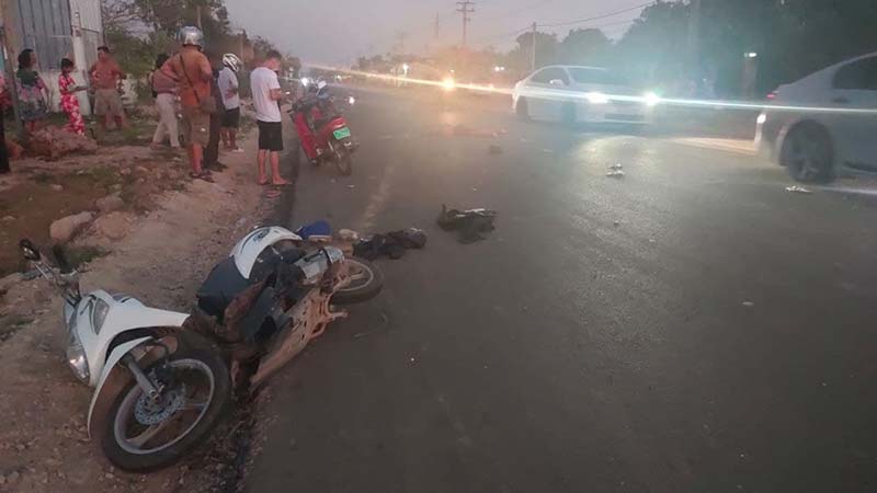 ប្រភពបានបន្តទៀតថា៖លុះមកដល់ចំណុចកើតហេុខាងលើក៏បុកទួលថ្នល់ទើបតែអ៊ុតដួលបោកអូសមនុស្សខ្ទាតចូលម៉ូតូមួយគ្រឿងទៀតម៉ាកLet’s ពណ៏ ស ពាក់ផ្លាកលេខ ភ្នំពេញ ១DD ៨៥៩២ បើកបរដោយឈ្មោះ ថន ស្រីលក្ខណ៍ ភេទ ស្រី អាយុ ២៧ ឆ្នាំ មុខរបរ បុគ្គលិកអេសុីលីដា រស់នៅភូមិ រោងបន្លែ សង្កាត់/ក្រុង/ខេត្ត ស្វាយរៀងដែលធ្វើដំណើរពីកើតទៅលិច ពាក់មួកសុវត្ថិភាពបណ្តាលឲ្យអ្នកបើកបរម៉ូតូធំស្លាប់ភ្លាមៗនៅកន្លែងកើតហេតុតែម្តងនិងអ្នកបើកបរម៉ូតូម៉ាកLet’s ពណ៏ ស រងរបួសស្រាល ម៉ូតូខូចខាតស្រាល ។
