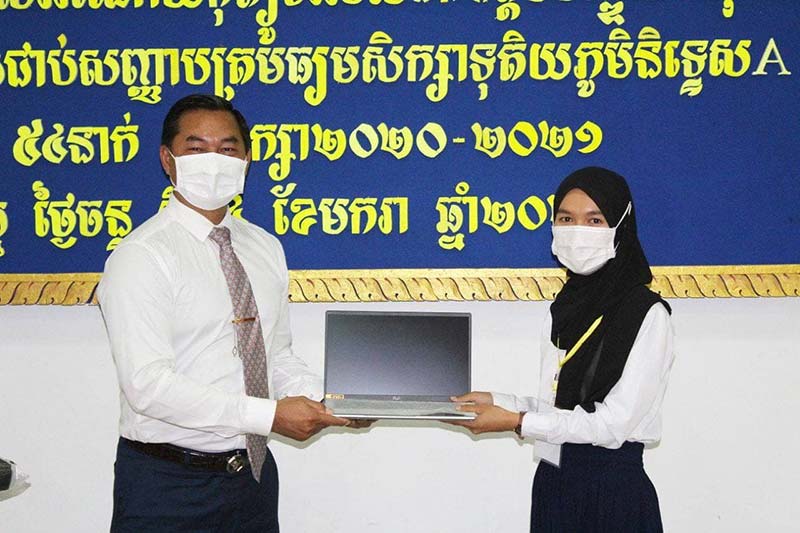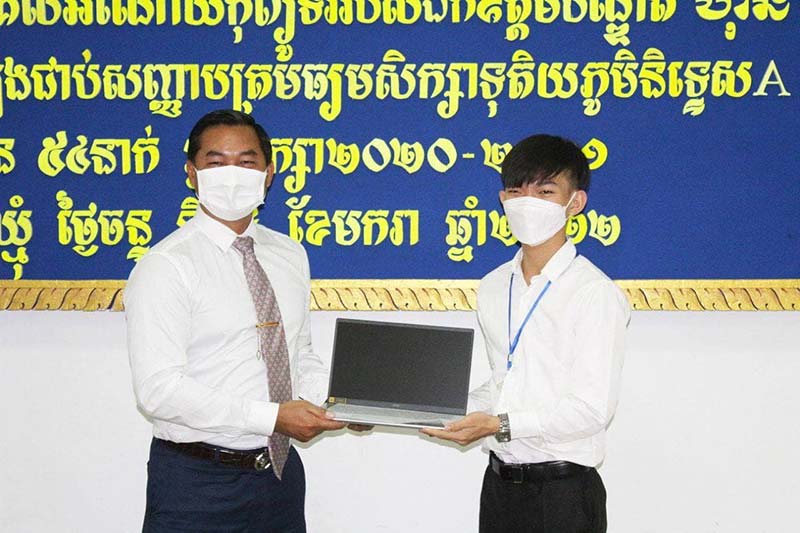 ត្បូងឃ្មុំ : កុំព្យូទ័រយួរដៃ (computer latop) ចំនួន៥៤គ្រឿង ព្រមទាំងថវិកា ជារង្វាន់ដ៏ថ្លៃថ្លារបស់ឯកឧត្តមបណ្ឌិត ហ៊ុន ម៉ាណែត ត្រូវបានឯកឧត្តម ជាម ច័ន្ទសោភ័ណ អភិបាលខេត្តត្បូងឃ្មុំ នាំយកទៅផ្តល់ជូនសិស្សានុសិស្សប្រលងជាប់សញ្ញាបត្រទុតិយភូមិ (បាក់ឌុប) និទ្ទេសA ទាំង៥៤នាក់ ក្នុងឆ្នាំសិក្សា២០២០-២០២១ ដែលជាការលើកទឹកចិត្តដល់ប្អូនៗក្មួយៗខិតខំសិក្សា ប្រលងជាប់ទទួលបាននិទ្ទេសល្អ ក្នុងចំណោមសិស្សដែលប្រលងជាប់ជាស្ថាពរសរុប២៩៤៤នាក់ ក្នុងខេត្តត្បូងឃ្មុំទាំងមូល ។