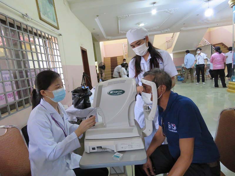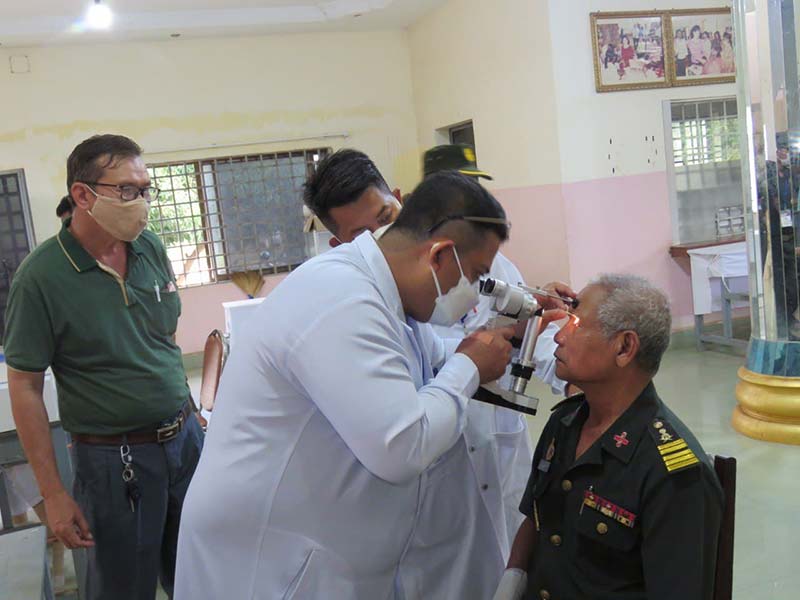 កំពង់ចាម : លោកវេជ្ជបណ្ឌិត ង៉ិល វុធ អនុប្រធានមន្ទីរព្យាបាលភ្នែកហូសេងភ្នំពេញ បាន ដឹកនាំ ក្រុមការងារ សហការជាមួយ មន្ទីរពេទ្យយោធភូមិភាគទី២ ដោយមានការគាំទ្រ ពី ស.ស.យ.ក និង សមាគម LP8 ដែលបានចូលរួមឧបត្តមនូវ ថវិកា មួយចំនួន សម្រាប់ ធ្វើការពិនិត្យ ព្យាបាល និងផ្ដល់ជាវែនតា ជូន ដល់ បងប្អូន ប្រជាពលរដ្ឋ ក្នុង ស្រុកកំង់សៀម ប្រមាណ ជាង ៤០០នាក់ ដែលមានបញ្ហាភ្នែក ត្រូវបាន ធ្វើឡើង នារសៀល ថ្ងៃទី ២៤ ខែមករា ឆ្នាំ ២០២២ នៅ មន្ទីរពេទ្យ ៧ដេ ខេត្តកំពង់ចាម ។