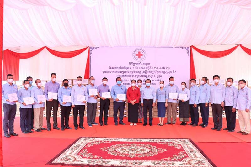 ក្នុងឱកាសនោះដែរ លោកជំទាវ ម៉ែន នារីសោភ័គ អគ្គលេខាធិការរងទី១កាកបាទក្រហមកម្ពុជា បានពាំនាំប្រសាសន៍ផ្តាំផ្ញើពីសំណាក់សម្តេចកិត្តិព្រឹទ្ធបណ្ឌិត ប៊ុន រ៉ានី ហ៊ុនសែន ប្រធានកាកបាទក្រហមកម្ពុជា ដែលជានិច្ចកាលតែងតែគិតគូរដល់សុខទុក្ខប្រជាពលរដ្ឋ។ ទន្ទឹមនឹងនេះដែរ សូមកោតសរសើរ និងថ្លែងអំណរគុណ ចំពោះ គណៈម្មាធិការសាខា អនុសាខា ជាពិសេសលោកគ្រូអ្នគ្រូពេទ្យនៅតាមមន្ទីរបង្អែក និងមណ្ឌលសុខភាព ដែលវីរជនអាវស ក្នុងការជួយក្នុងការអប់រំផ្សព្វផ្សាយក៏ដូចជាការជួយសង្គ្រោះដល់អ្នកជំងឺកូវីដ-១៩ ហើយកាកបាទក្រហមកម្ពុជា បានចូលរួមចំណែកជាមួយអាជ្ញាធរសាធារណៈក្នុងអប់រំផ្សព្វផ្សាយ លើកកម្ពស់សុខភាពសហគមន៍ ការងារគ្រប់គ្រងគ្រោះមហន្តរាយ។