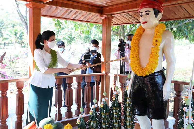 ខេត្តប៉ៃលិន ៖ នៅព្រឹកថ្ងៃទី២៦ ខែមករា ឆ្នាំ២០២២ លោកជំទាវ បាន ស្រីមុំ អភិបាលខេត្តប៉ៃលិន ឯកឧត្តម សៅ សារ៉ាត់ អ្នកតំណាងរាស្ត្រមណ្ឌលប៉ៃលិន អមដំណើរដោយអភិបាលរងខេត្ត ព្រមទាំងមន្រ្តីរាជការមកពីមន្ទីរជុំវិញខេត្ត បានរៀបចំពិធីបួងសួងសុំសេចក្តីសុខ និងឡើងអ្នកតាភ្នំខៀវ ស្ថិតនៅមុខផ្លូវចូលខ្លោងទ្វាររមណីយដ្ឋានទឹកធ្លាក់អូរតាវ៉ៅ ហៅភ្នំខៀវ ក្នុងភូមិខ្លុង សង្កាត់អូរតាវ៉ៅ ក្រុងប៉ៃលិន ខេត្តប៉ៃលិន ដោយមានការប្តូរទីតាំងអ្នកតាភ្នំខៀវចុះពីកូនខ្ទមចាស់តូច មកដាក់តាំងឱ្យគង់នៅកន្លែងអាស្រមធំទូលាយសង់ថ្មីចំនួន៣ខ្នង ។
