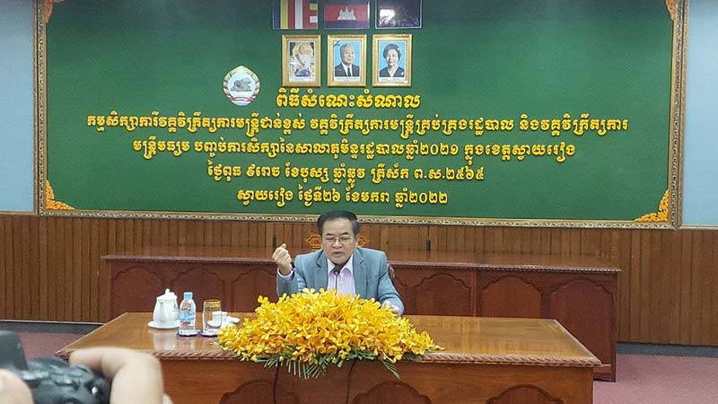 ខេត្តស្វាយរៀង៖ ឯកឧត្តម ម៉ែន វិបុល អភិបាលខេត្តស្វាយរៀង នៅព្រឹកថ្ងៃទី២៦ ខែមករា ឆ្នាំ២០២២នេះ បានអញ្ជើញជួបសំណេះសំណាល ជាមួយកម្មសិក្សាការីវគ្គវិក្រឹត្យការមន្ដ្រីជាន់ខ្ពស់ វគ្គវិក្រឹត្យការមន្ដ្រីគ្រប់គ្រងរដ្ឋបាល និងវគ្គវិក្រឹត្យការមន្ដ្រីមធ្យម ដែលបានបញ្ចប់ការសិក្សានៅសាលាភូមិន្ទរដ្ឋបាល ឆ្នាំ២០២១។