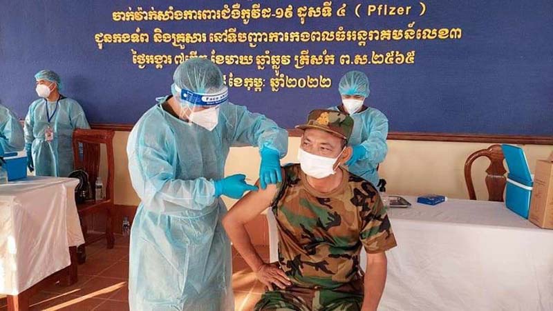 ព្រះវិហារ៖ នៅព្រឹកថ្ងៃទី៨ ខែកុម្ភៈ ឆ្នាំ២០២២នេះ ក្រុមការងារចាក់វ៉ាក់សាំងទីបញ្ជាការ កងពលធំអន្តរាគមន៍លេខ៣ និងកងពលតូចអន្តរាគមន៌ទាំង៣ បានចាប់ផ្ដើមយុទ្ធនាការចាក់វ៉ាក់សាំងជូនគ្រួសារកងទ័ព និងគ្រួសារកងទ័ព សម្រាប់ម្ជុលទី៤ ដូសជម្រុញ ។