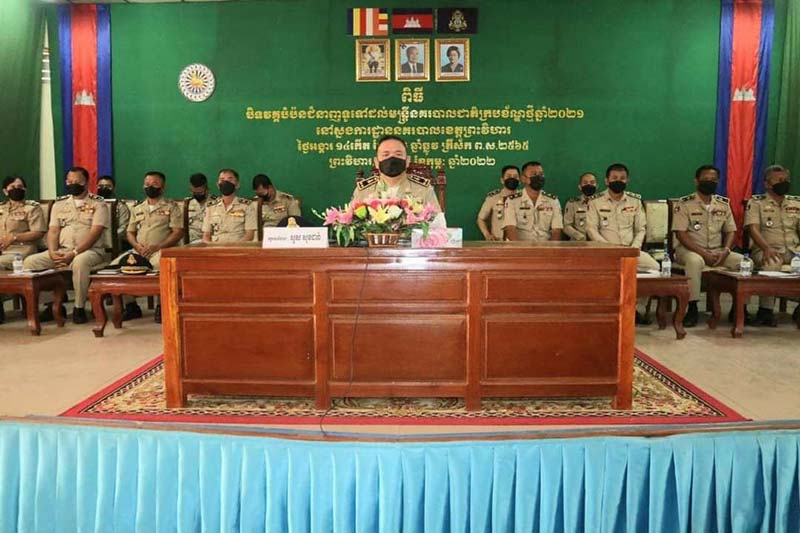 ព្រះវិហារ : នៅថ្ងៃ ទី១៥ ខែកុម្ភៈ ឆ្នាំ ២០២២នេះ ស្នងការដ្ឋាននគរបាលខេត្តព្រះវិហារ បានធ្វើពិធីបិទវគ្គបំប៉នជំនាញទូទៅដល់មន្ត្រីនគរបាលជាតិក្របខ័ណ្ឌថ្មីឆ្នាំ២០២១ និងបំពាក់ឋានន្តរសក្តិ ដល់នាយនិងពលនគរបាលនៅស្នងការដ្ឋាននគរបាលខេត្តព្រះវិហារ។