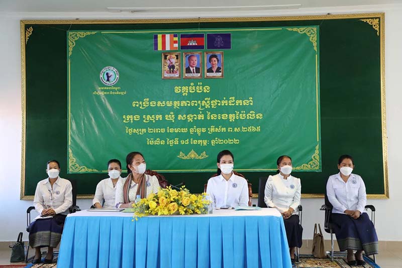 ប៉ៃលិន ៖ សមាគមនារីកម្ពុជា ដើម្បីសន្តិភាព និងអភិវឌ្ឍន៍ខេត្តប៉ៃលិន បានរៀបចំបើកវគ្គបំប៉នសមត្ថភាពស្រ្តីជាថ្នាក់ដឹកនាំ ក្រុង ស្រុក ឃុំ សង្កាត់ នៃ ខេត្ត ប៉ៃលិន ក្រោមអធិបតីភាពលោកជំទាវ ជូ ប៊ុនអេង សមាជិកគណៈកម្មាធិការកណ្តាល អនុប្រធានសមាគមនារីកម្ពុជាដើម្បីសន្តិភាព និងអភិវឌ្ឍន៍ លោកជំទាវ បាន ស្រីមុំ ប្រធានគណៈកម្មការកិត្តិយសសាខាសមាគមនារីកម្ពុជា ដើម្បីសន្តិភាព និងអភិវឌ្ឍន៍ខេត្ត និងជាអភិបាលខេត្តប៉ៃលិន ដែលធ្វើឡើងនាព្រឹកថ្ងៃសុក្រ ទី ១៨ ខែកុម្ភៈ ឆ្នាំ២០២២ នៅសាលប្រជុំធំ មន្ទីរ កិច្ចការ នារី ខេត្តប៉ៃលិន ។