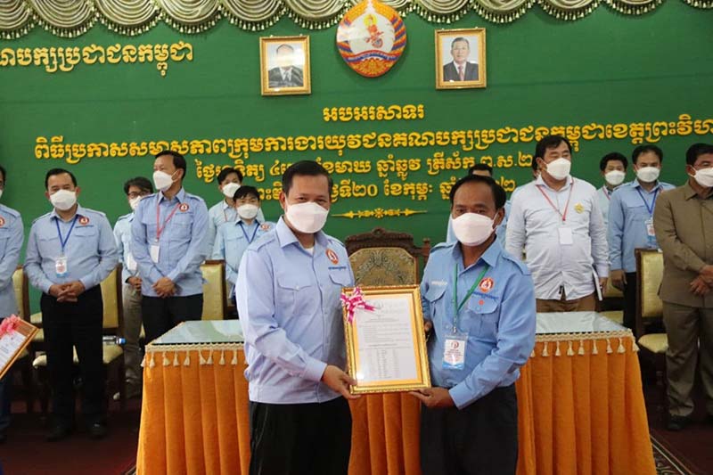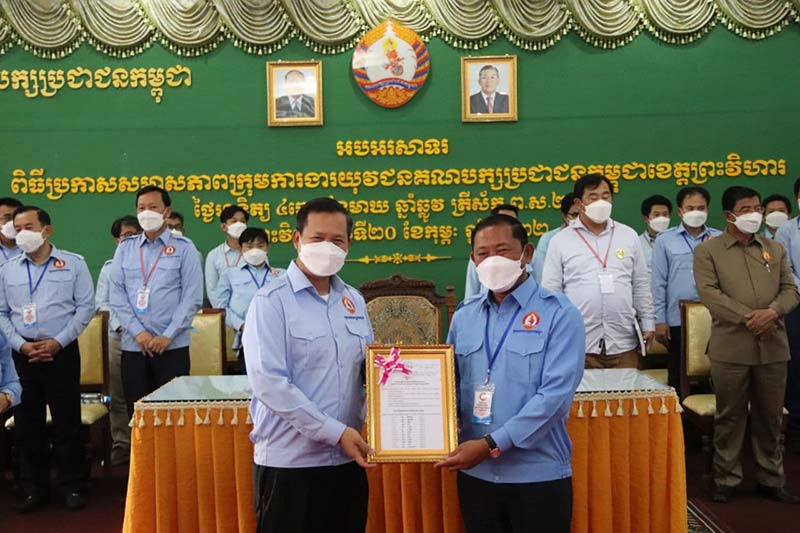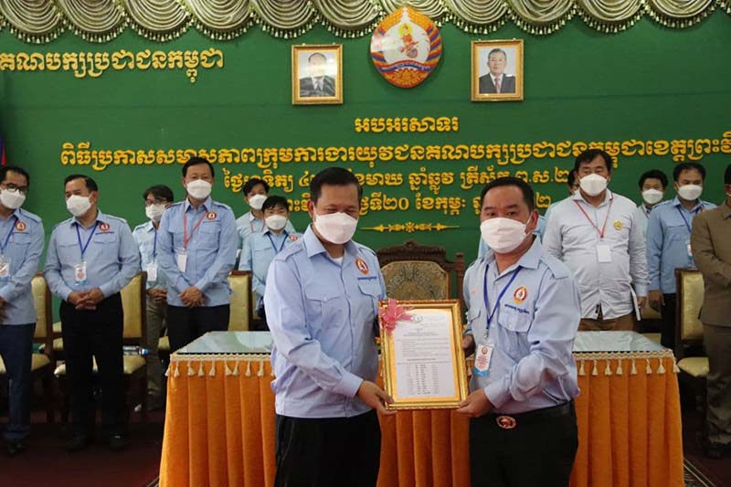 ព្រះវិហារ៖ ឯកឧត្ដម ហ៊ុន ម៉ាណែត សមាជិកគណៈអចិន្ត្រៃយ៍នៃគណៈកម្មាធិការកណ្តាល និងជាប្រធានយុវជនគណបក្សប្រជាជនកម្ពុជាថ្នាក់កណ្តាល នារសៀលថ្ងៃទី២០ ខែកុម្ភៈ ឆ្នាំ២០២២ បានអញ្ជើញជាអធិបតីប្រកាសសមាសភាពក្រុមការងារយុវជនគណបក្សខេត្តព្រះវិហារ។