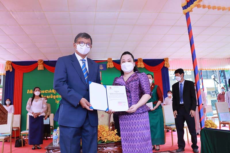 ខេត្តកណ្ដាល៖ អគារសិក្សា ១ខ្នង ៤ជាន់ ស្មើនឹង១២បន្ទប់ បំពាក់គ្រឿងសង្ហារឹម ទាំងក្នុងនិងក្រៅថ្នាក់ ក្រាលស្មៅសិប្បនិមិត្តខាងមុខសាលា គូររូបតាមជញ្ជាំងរបង ដែលជាអំណោយរបស់លោកជំទាវឧកញ៉ា នាងវិសាខា អគ្គមហាឧបាសិកាពុទ្ធសាសនូបត្ថម្ភកិត្តិបណ្ឌិត សៀង ចាន់ហេង អគ្គនាយិកាក្រុមហ៊ុនហេង អភិវឌ្ឍន៍ ត្រូវបានសម្ភោធដាក់អោយប្រើប្រាស់ជាផ្លូវការ ក្រោមអធិបតីភាពឯកឧត្តមបណ្ឌិតសភាចារ្យ ហង់ជួន ណារ៉ុន រដ្ឋមន្ត្រីក្រសួងអប់រំ យុវជន និងកីឡា នាព្រឹកថ្ងៃទី២១ ខែកុម្ភៈ ឆ្នាំ២០២២។