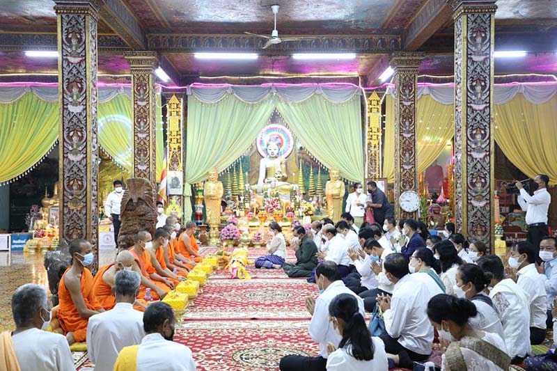 ប៉ៃលិន ៖ ព្រឹកថ្ងៃអង្គារ៍ ០៦រោច ខែមាឃ ឆ្នាំឆ្លូវ ត្រីស័ក ព.ស.២៥៦៥ ត្រូវនឹងថ្ងៃទី២២ ខែកុម្ភៈ ឆ្នាំ២០២២ ឯកឧត្តម អុី ឈាន រដ្ឋលេខាធិការក្រសួងការពារជាតិ និងជាប្រធានក្រុមការងាររាជរដ្ឋាភិបាល ចុះជួយមូលដ្ឋានខេត្តប៉ៃលិន បានអញ្ជើញទទួល និងអមដំណើរលោកជំទាវកិត្តិសង្គហបណ្ឌិត ម៉ែន សំអន ឧបនាយករដ្ឋមន្ត្រី និងជារដ្ឋមន្រ្ដីក្រសួងទំនាក់ទំនងជាមួយរដ្ឋសភា-ព្រឹទ្ធសភា និងអធិការកិច្ច ចូលរួមពិធីលើកទង់ និងដាក់សម្ពោធដងទង់សាសនាប្រើប្រាស់ជាផ្លូវការ នៅវត្តរតនសោភ័ណ ហៅវត្តកោងកាង ស្ថិតនៅភូមិវត្ត សង្កាត់ ប៉ៃលិន ក្រុងប៉ៃលិន ។ លោកជំទាវបានថ្លែងថា សម្រាប់ខេត្តប៉ៃលិនពីអតីតកាល គឺជាទីតាំង និងសមរភូមិក្តៅ ប៉ុន្តែបច្ចុប្បន្ននេះ បានប្រែក្លាយទៅជាតំបន់ដែលមានការអភិវឌ្ឍន៍លើគ្រប់វិស័យ រួមជាមួយនឹងរោងចក្រ សហគ្រាស ក្រុមហ៊ុនតូចធំ និងសេដ្ឋកិច្ចតាមព្រំដែនរីកចម្រើនគួរអោយកត់សម្គាល់ដែលបានជំរុញកំណើនសេដ្ឋកិច្ច នៃខេត្តប៉ៃលិនបានមួយកម្រិត និងជួយកាត់បន្ថយភាពក្រីក្រ និងកាត់បន្ថការធ្វើចំណាកស្រុកជាដើម។