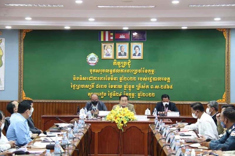 ខេត្តស្វាយរៀង៖នៅថ្ងៃព្រហស្បតិ៍ ៨រោច ខែមាឃ ឆ្នាំឆ្លូវ ត្រីស័ក ព.ស.២៥៦៥ ត្រូវនឹងថ្ងៃទី២៤ ខែកុម្ភៈ ឆ្នាំ២០២២នេះ នៅសាលប្រជុំនន្ទី អគារ(ខ) សាលាខេត្ត ឯកឧត្ដម ម៉ែន វិបុល អភិបាល នៃគណៈអភិបាលខេត្តស្វាយរៀង និងជាប្រធានគណៈបញ្ជាការឯកភាពរដ្ឋបាលខេត្ត បានអញ្ជើញជាអធិបតីក្នុងកិច្ចប្រជុំបូកសរុបលទ្ធផលការងារប្រចាំខែកុម្ភៈ និងទិសដៅការងារខែមីនា ឆ្នាំ២០២២ របស់រដ្ឋបាលខេត្តស្វាយរៀង ។