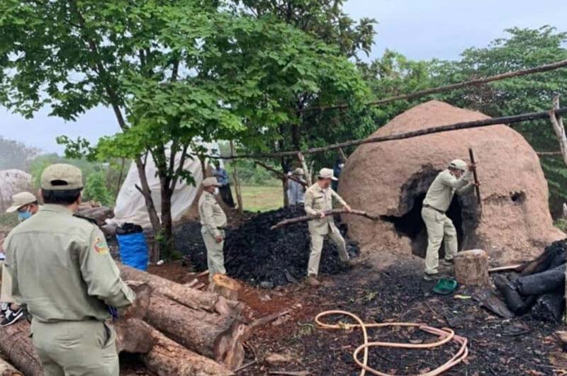 ២.ចំពោះឡដែលប្រមូលផលហើយនៅទំនេរ ក្រុមការងារ និងរុះរើផ្ទាល់នៅនិងកន្លែង។ ជាលទ្ធផលក្រុមការងារសម្រេចធ្វើកិច្ចសន្យាបញ្ឈប់សកម្មភាពបាន៥៤ម្ចាស់ ដែលមានឡធ្យូងចំនួន៥៧ឡ និងបានរុះរើបំផ្លាញចោលបានចំនួន ២៨ឡ។ សូមជម្រាបថាសកម្មភាពឡធ្យូង ជាមុខរបរមួយបានបំផ្លាញធនធានធម្មជាតិយ៉ាងធ្ងន់ធ្ងរ បើទោះបីជាមុខរបរនេះជាមុខរបរកសិករយ៉ាងណាក៏ដោយ។ ទោះជាយ៉ាងណា មន្ត្រីរដ្ឋបាលព្រៃឈើបានអំពាវនាវដល់ប្រជាពលរដ្ឋទាំងអស់ដែលប្រកបមុខរបរ ឡធ្យូង ត្រូវបញ្ឈប់ជាបន្ទាន់ចំពោះសកម្មភាពបែបនេះ៕SKS