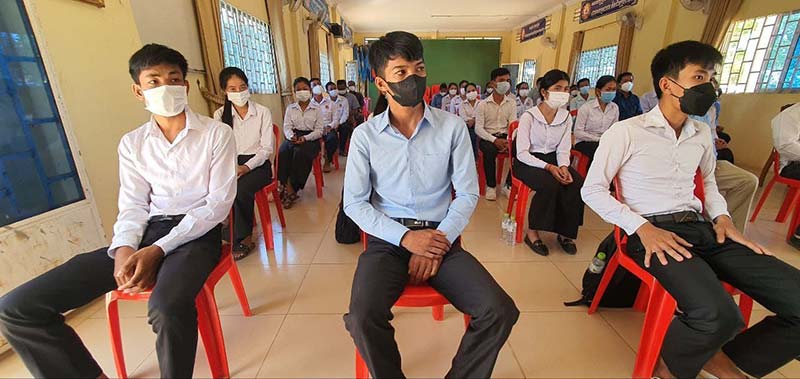 កំពង់ធំ៖លោកជំទាវ ឃួន ឃុនឌី សមាជិកព្រឹទ្ធសភានិងជាប្រធានក្រុមការងារចុះមូលដ្ឋានស្រុកកំពង់ស្វាយ បានជួបសំណេះសំណាលជាមួយសិស្សជាប់និទ្ទេស A និង B នៅស្រុកកំពង់ស្វាយ ខេត្តកំពង់ធំ.កាលពីរសៀលថ្ងៃទី ២៦ ខែកុម្ភៈ ឆ្នាំ ២០២២ នៅសាលាស្រុកំពង់ស្វាយ ។