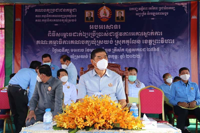ព្រះវិហារៈ អគារទីស្នាក់ការគណបក្សប្រជាជនកម្ពុជា ស្ថិតក្នុងឃុំស្រយ៉ង់ ស្រុកគូលែន ខេត្តព្រះវិហារ ដែលចំណាយថវិកាអស់ចំនួន១១៥លានរៀល ត្រូវបានសម្ពោធដាក់ឱ្យប្រើប្រាស់ជាផ្លូវការ ក្រោមវត្តមានឯកឧត្ដមទេសរដ្ឋមន្រ្តី មាស សុភា សមាជិកអចិន្ត្រៃយ៍គណៈកម្មាធិការកណ្ដាល និងជាប្រធាន ក្រុមការងារគណបក្សចុះពង្រឹងមូលដ្ឋានខេត្តព្រះវិហារ កាលពីព្រឹកថ្ងៃទី២៧ ខែកុម្ភៈ ឆ្នាំ ២០២២នេះ។